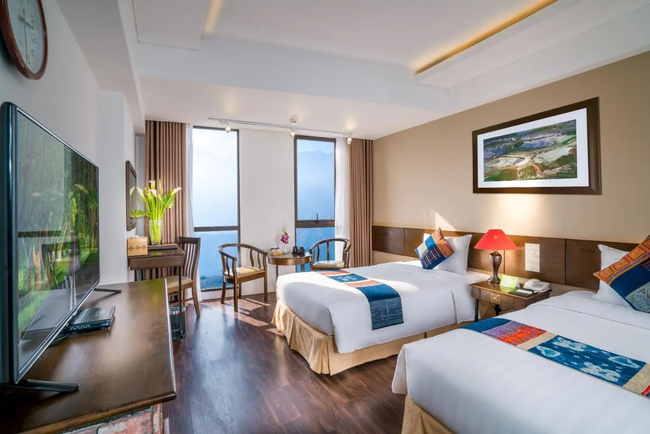 Situated in the heart of Sapa town—just steps away from Sapa Stone Church, the central square, and Sapa Lake—Amazing Hotel Sapa offers modern 4-star comforts with panoramic views of the Hoang Lien Son mountains and Muong Hoa Valley. This 82-room hotel combines luxury, convenience, and breathtaking scenery, making it one of Sapa’s top-rated accommodations.