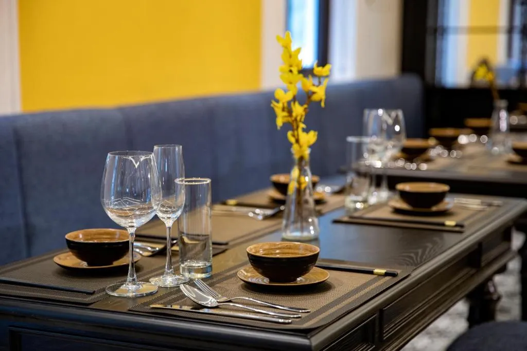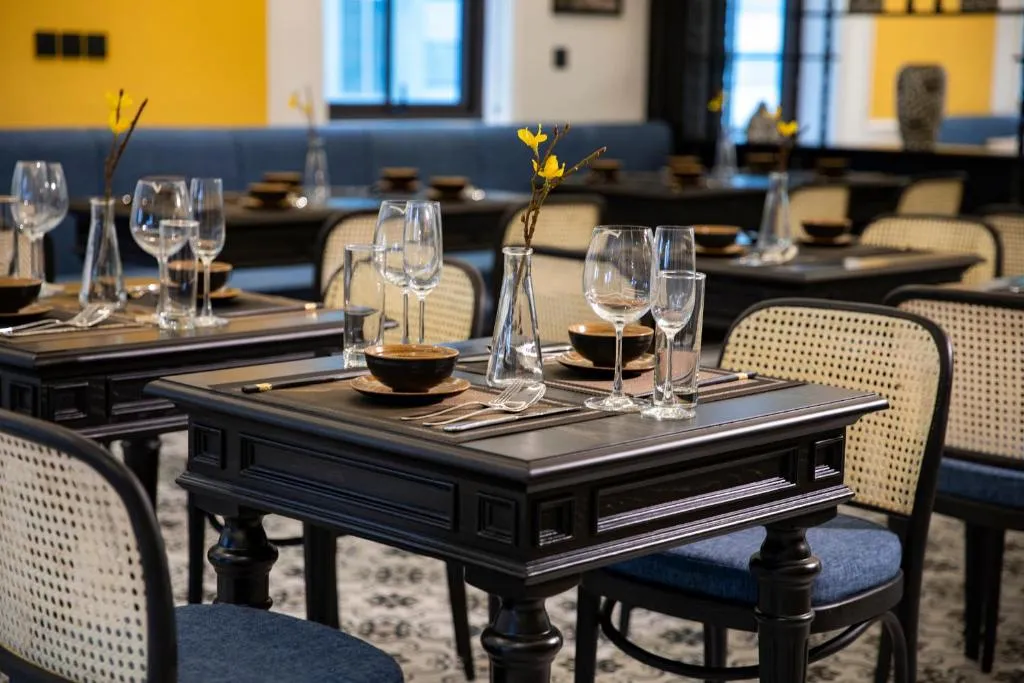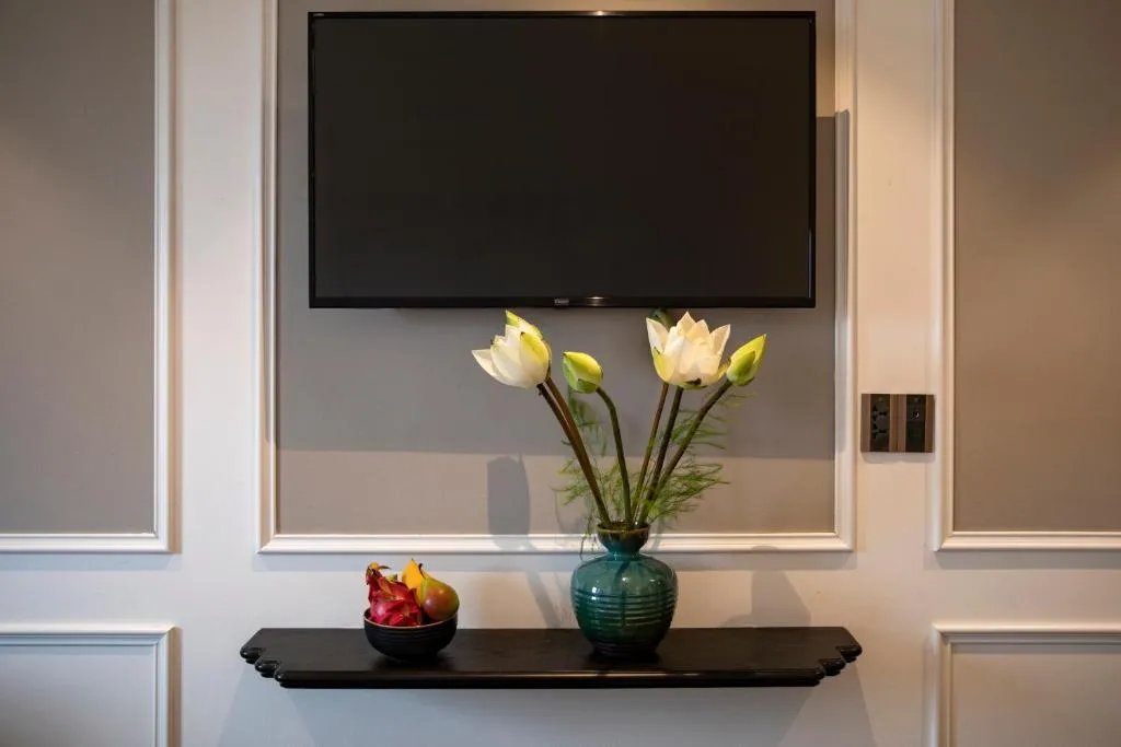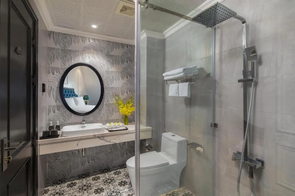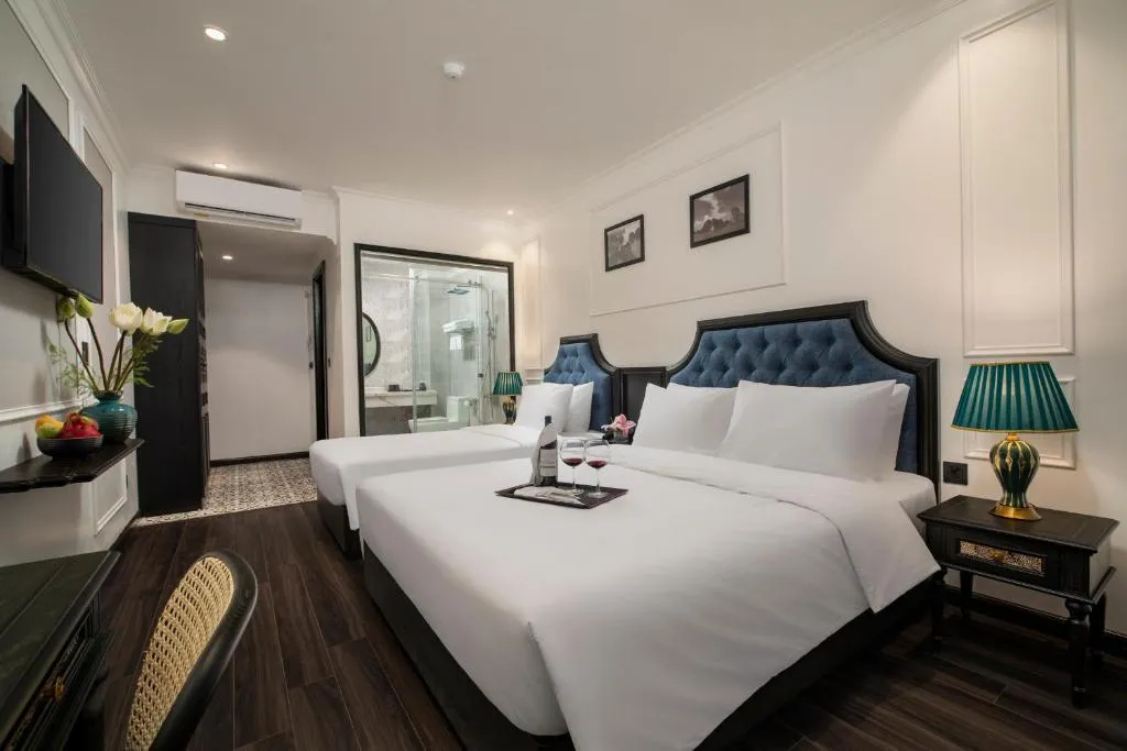 A boutique-scale 3★ hotel with around 35–36 thoughtfully styled rooms in a mid-rise building. The design mixes Indochine motifs, wooden floors, and eclectic lighting to evoke local character.