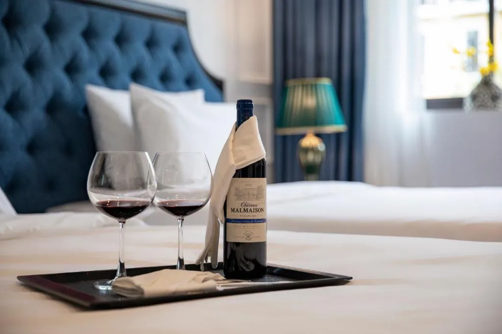Guest rooms include air-conditioning, flat‑screen cable TV, free Wi‑Fi (100+ Mbps), minibar, safe, kettle, toiletries, and private bathrooms with rainfall showers and bidets. Some rooms offer city views or small balconies.