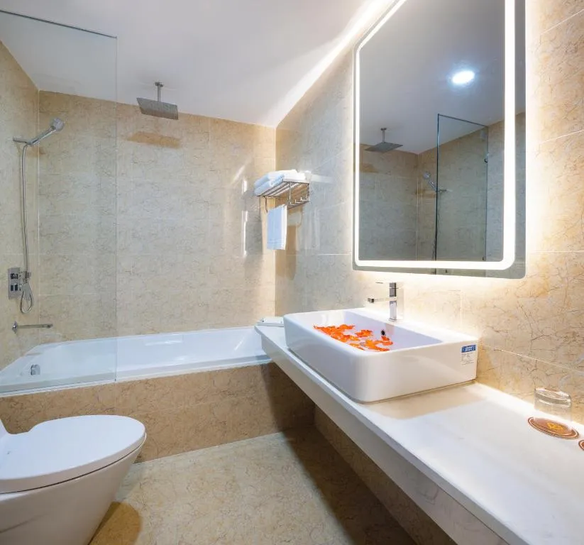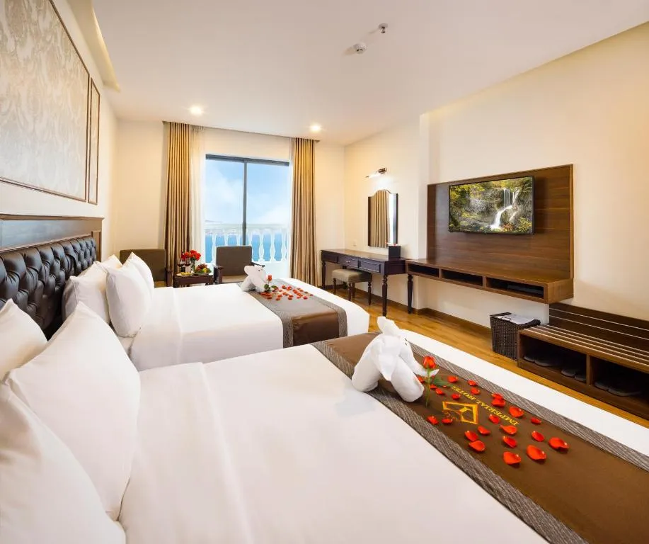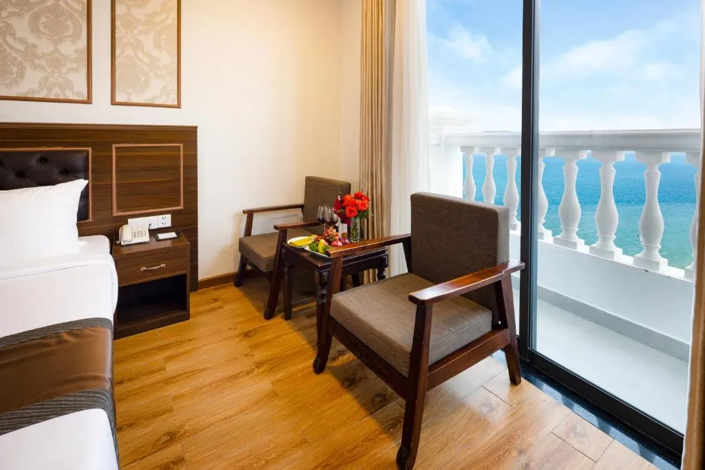 This modern 26‑story hotel has 143 stylish rooms, including Superior, Deluxe City View, Premium Sea View, Suites, and Family Apartments. Many rooms feature balconies, with select categories offering stunning views of Nha Trang Bay or the city skyline. Rooms are equipped with air conditioning, minibar/fridge, flat-screen TV, safe, desk, and en-suite bathroom.
