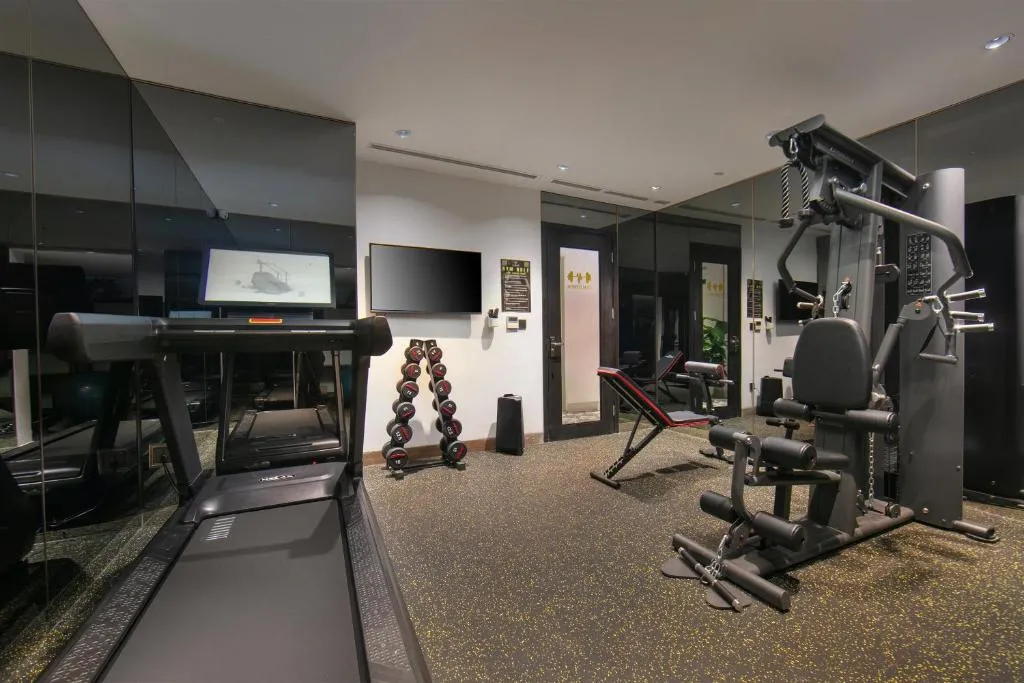 Guests start their day with a continental breakfast, while the nearby Smoothie Shack serves fresh Vietnamese flavors just steps away. Relaxation extends to the provided fitness center, and a sophisticated rooftop bar and dining space offers scenic views of Hanoi’s rhythmic streetscape.