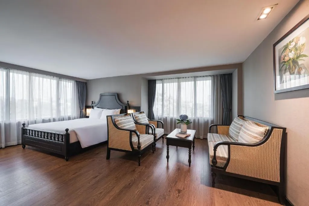 Deluxe City View rooms offer charming views over the Old Quarter with French-colonial architecture, leafy avenues, and temples.