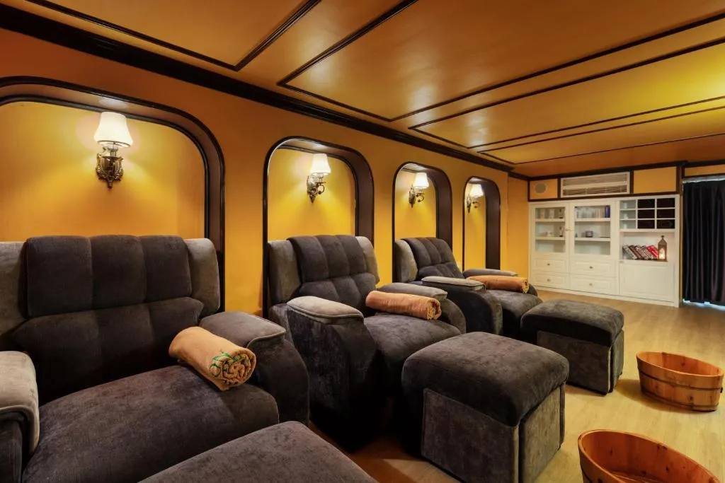 Full-service spa, treatment rooms, massage services, and steam room.