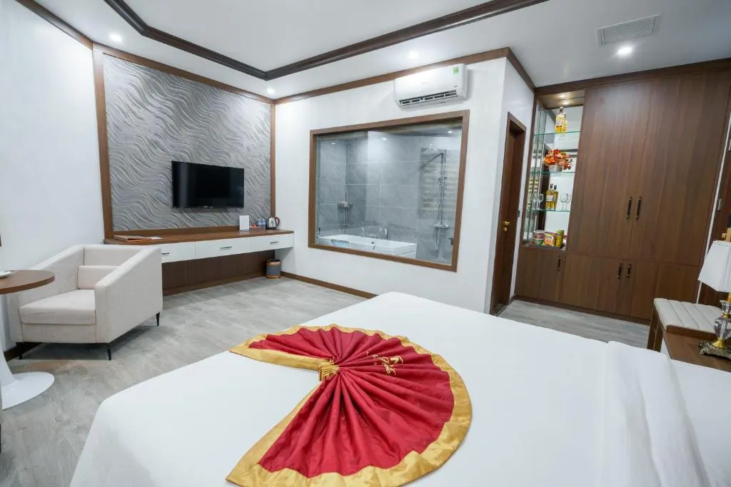 Situated within the charming Sun Plaza Grand World complex, Sunland Halong Hotel is just a 7–10 minute walk to Bãi Cháy Beach and right amidst European-themed shops, cafés, and dining venues. Close to the cable car terminal and waterfront attractions, it offers excellent access to both beach and city experiences.