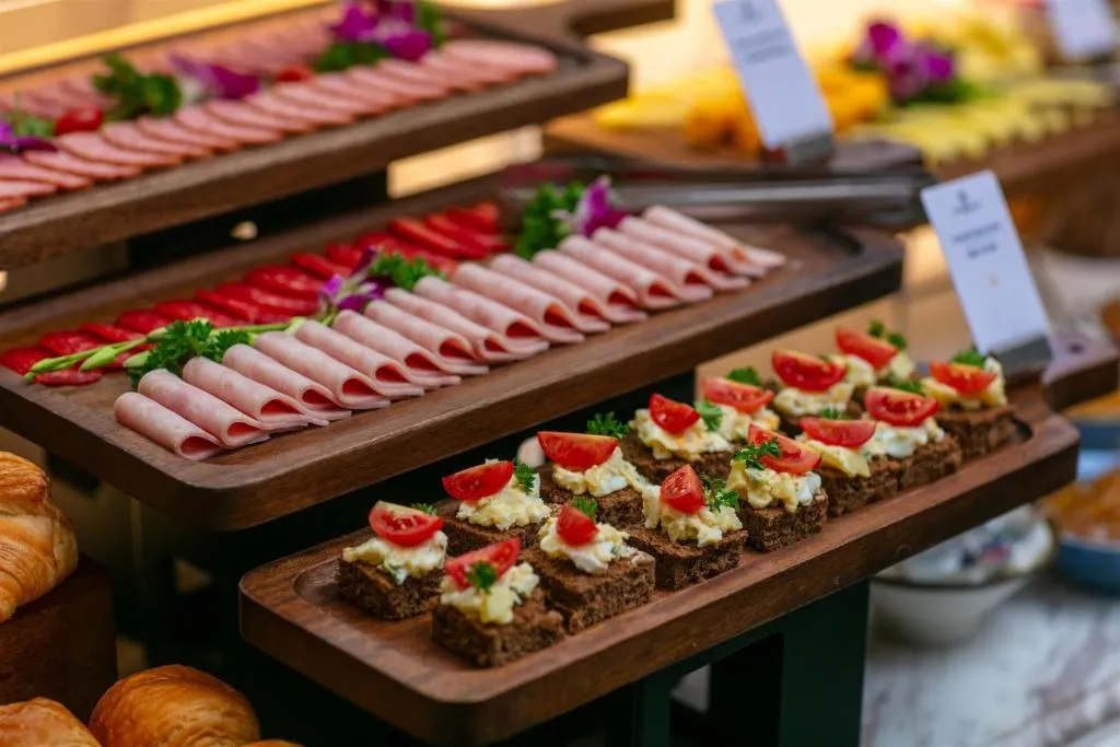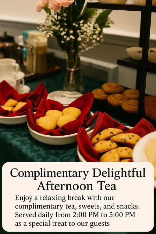 Served daily: complimentary buffet or cooked-to-order breakfast, with vegetarian, Halal, and gluten-free options
