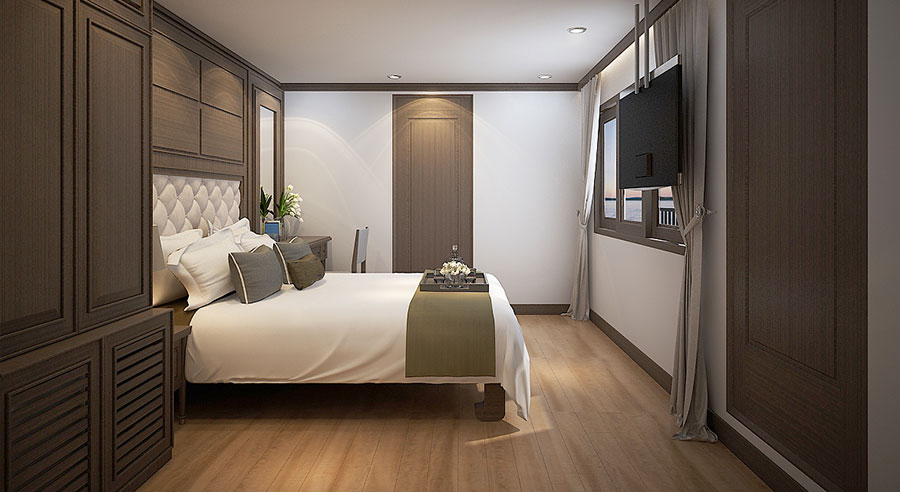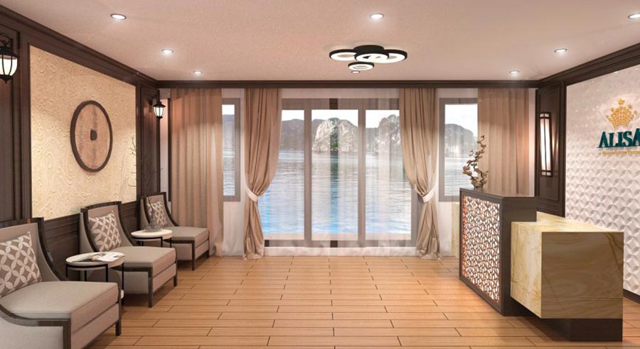 With its elegant design and thoughtfully appointed accommodations, Alisa Premier Cruise offers a refined and intimate journey through Halong Bay—one of the New Seven Natural Wonders of the World. Featuring 22 beautifully crafted cabins, the cruise promises comfort, style, and unforgettable views throughout your stay.
