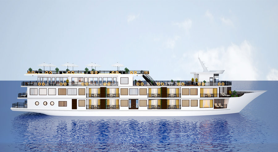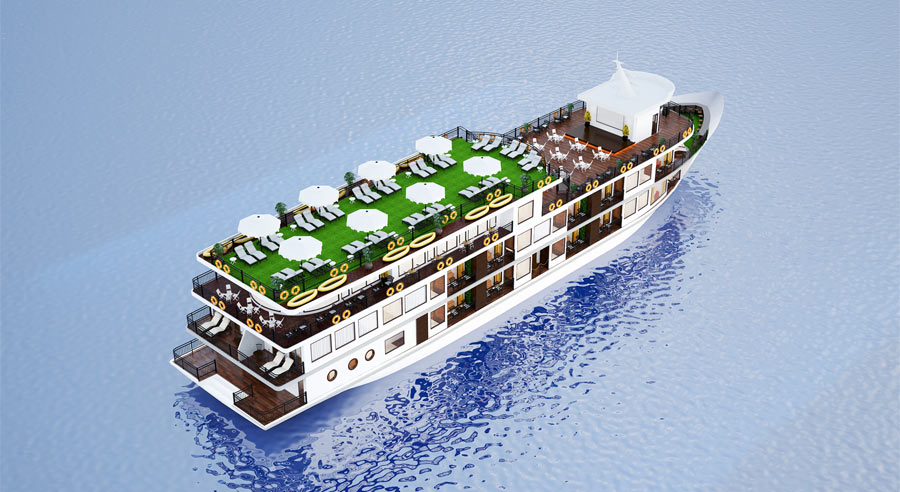 The cruise features 5 well-designed decks and 22 spacious cabins, all equipped with private balconies, minibar, en-suite bathrooms with jacuzzi bathtubs and separate standing showers. On board facilities include a stylish restaurant, bar, lounge, reading area, spa, and a spacious sundeck—ensuring comfort and relaxation throughout the voyage.