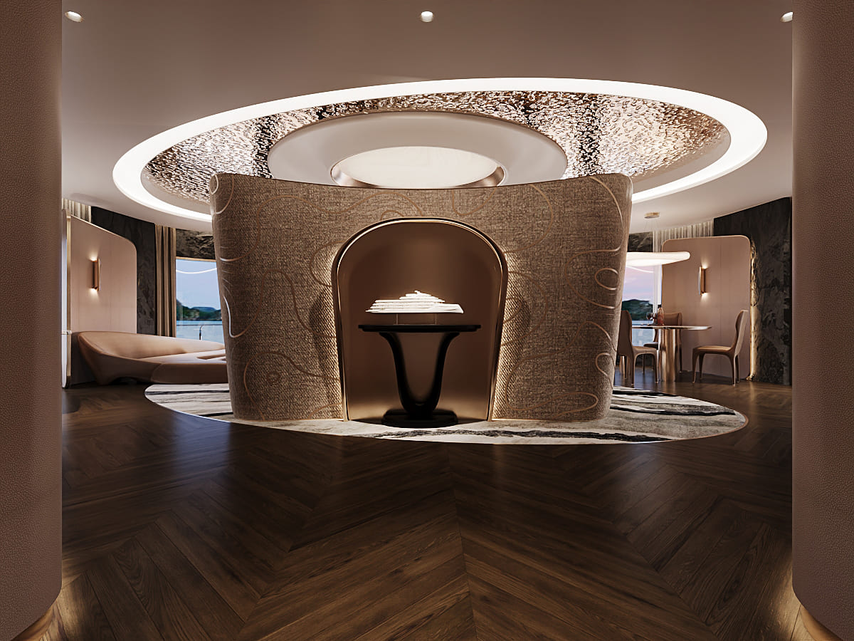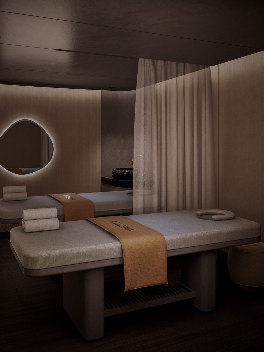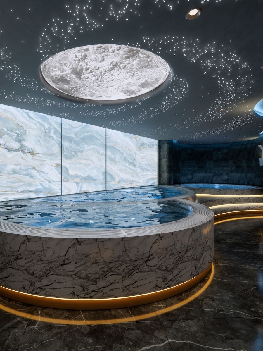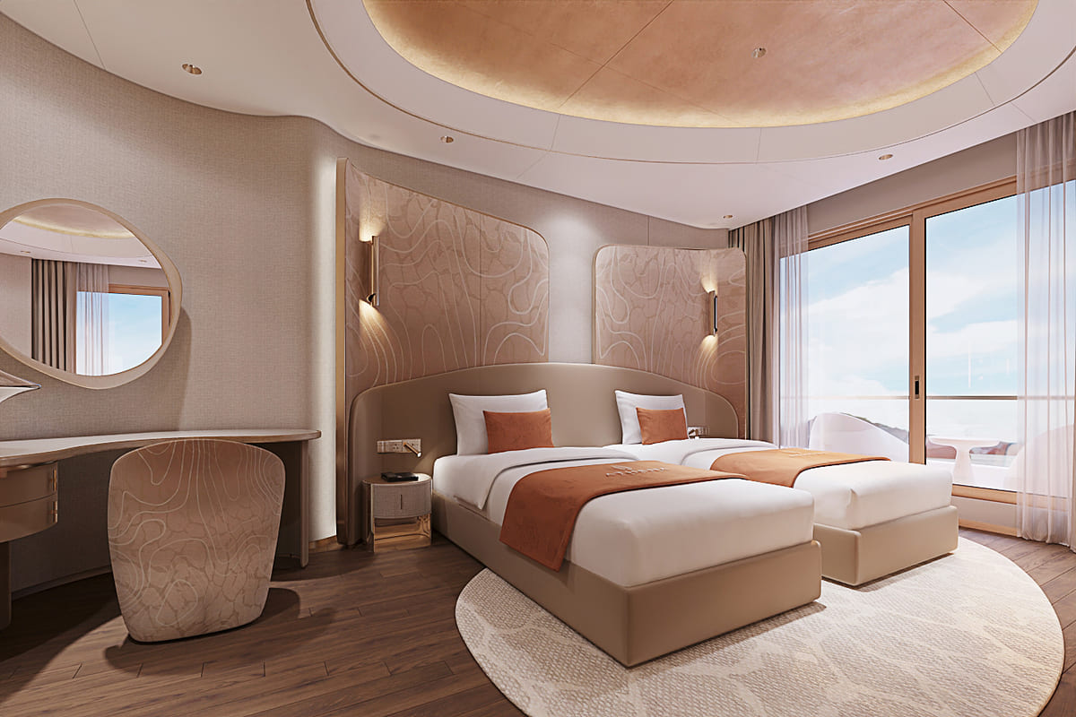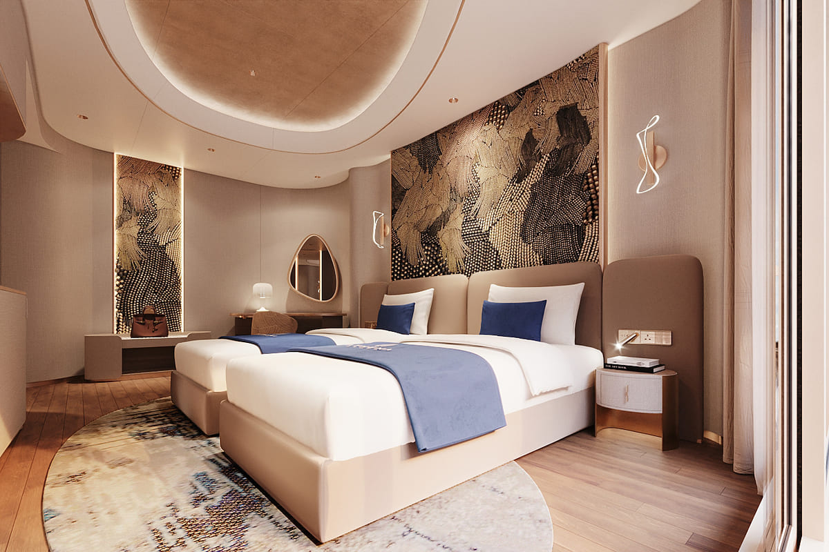 Beyond accommodation, Athena Premium delivers a truly multi-sensory journey where relaxation and entertainment are perfectly balanced. Guests can indulge in an impressive range of high-end facilities, including fine-dining restaurants, a luxury bar, a four-season swimming pool, a 3D golf course, onsen mineral baths, yoga and meditation rooms, sauna, and a sky observation lounge—all designed to enrich every moment on board.