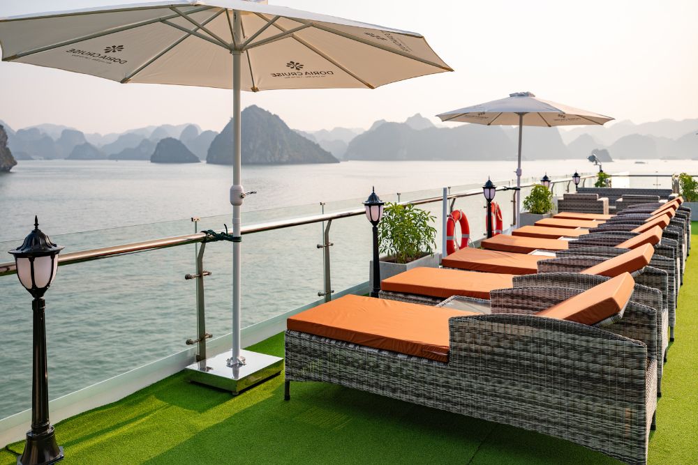 Doria Cruise operates thoughtfully designed Lan Ha Bay itineraries, visiting highlights such as Tra Bau Area and Dark & Bright Cave, with activities including kayaking or sampan boat rides. Longer itineraries extend to tranquil destinations like Viet Hai Village and hidden islands, offering cycling and kayaking experiences in untouched nature. Onboard activities such as sunset party, cooking demonstration, squid fishing, and Tai Chi sessions on the sundeck add memorable touches to the journey.