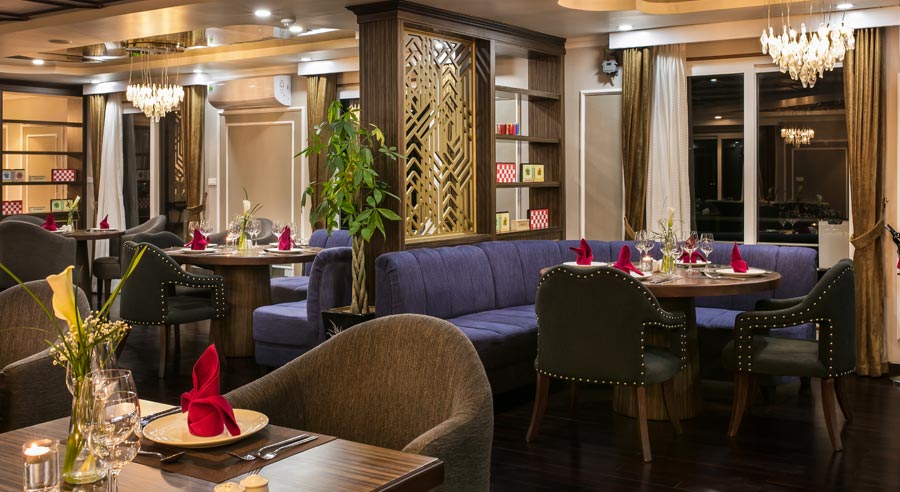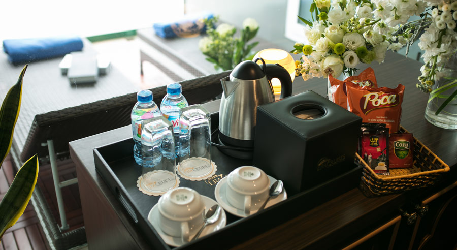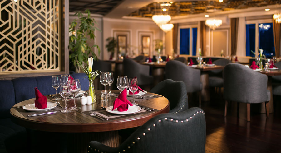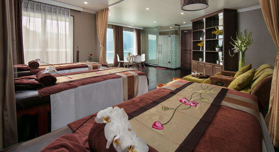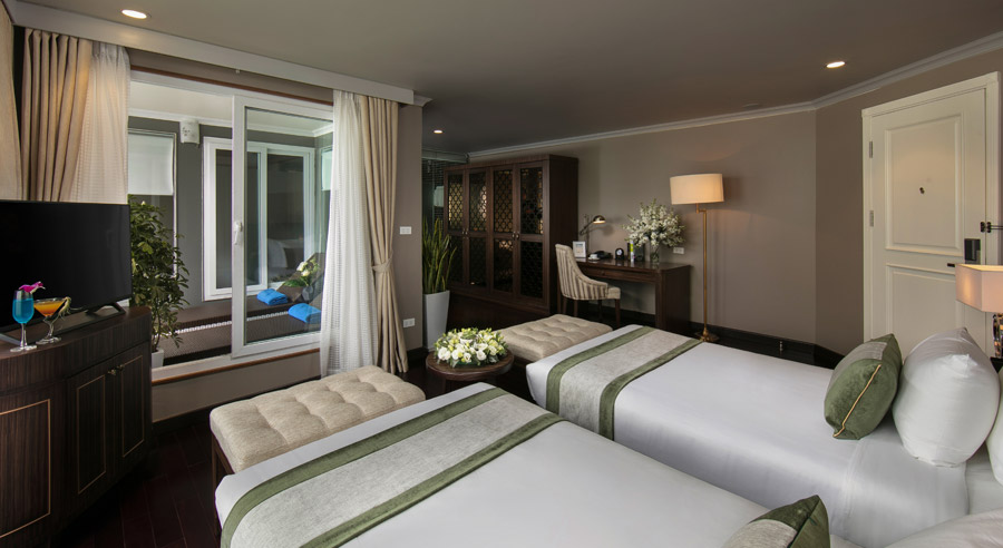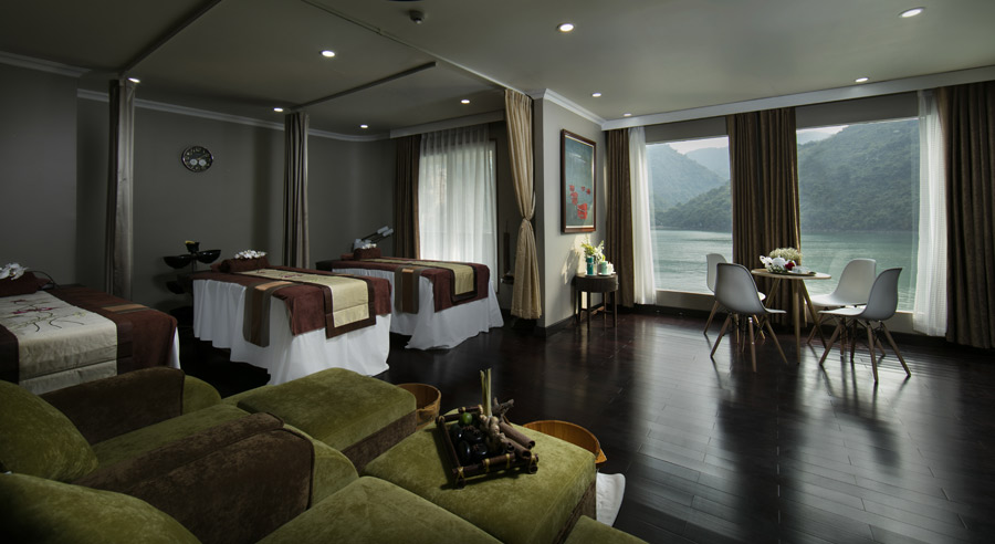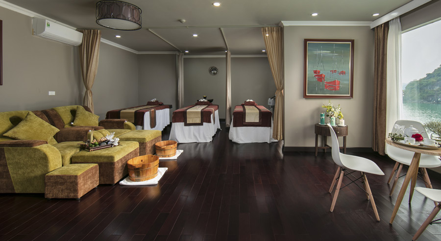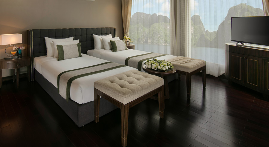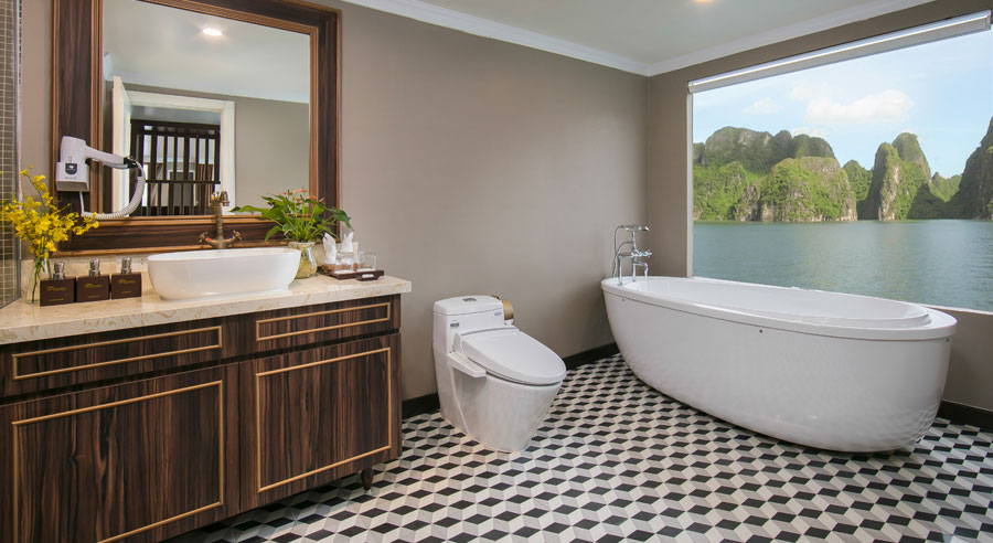 All cabins are elegantly decorated and come with a private sun terrace, generous living space, and premium amenities. Notably, the Era Suite, measuring 74 sqm, is one of the largest suites available among Halong Bay cruises, offering exceptional comfort and panoramic views.