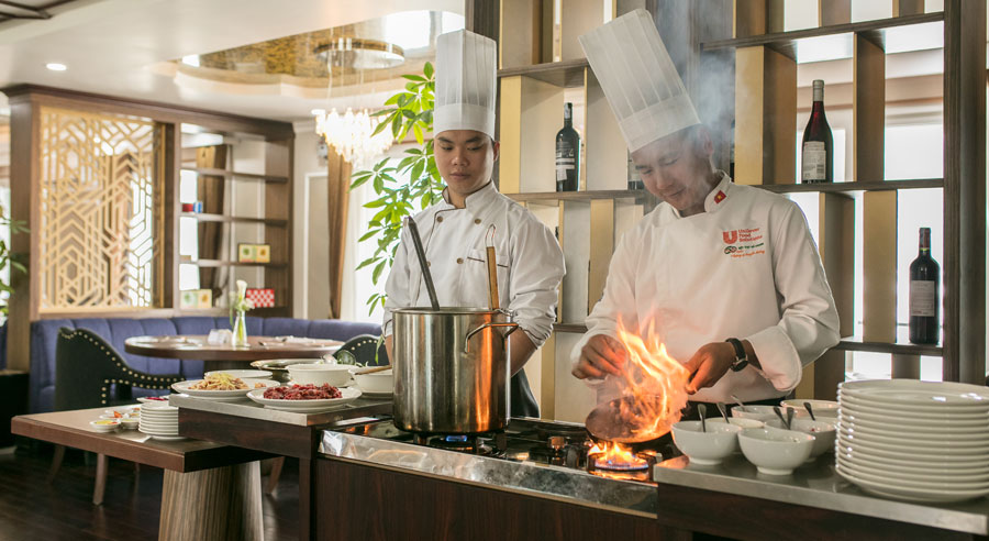 Era Cruise features 18 spacious cabins and suites, making it a boutique-style luxury cruise in Halong Bay well-suited for travelers who appreciate privacy and attentive service. The cruise sails through emerald waters to some of the most stunning caves and natural highlights in this world-famous destination.