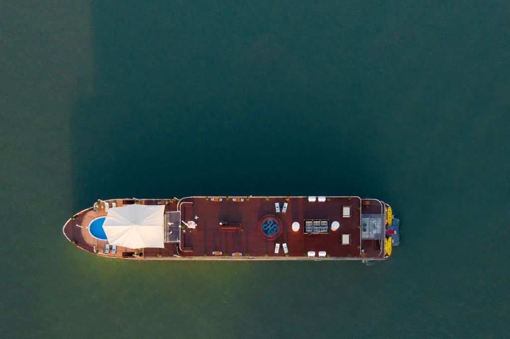 Launched in 2019, Heritage Binh Chuan is a four-deck luxury cruise inspired by the golden era of the Indochine period. Drawing design cues from Bach Thai Buoi’s legendary first ship, the vessel brings timeless heritage to life and offers an elegant 5-star retreat floating above the emerald waters of Lan Ha Bay.