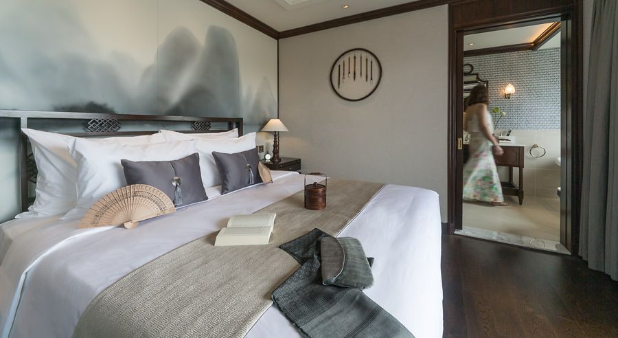 The 3-deck vessel houses 12 spacious, light-filled suites, categorized into Junior Suite, Signature Suite, and Regent Suite. Every suite includes modern comforts: air-conditioning, minibar, private balcony with sun loungers, LCD screen, sofa lounge, and refined décor. Onboard facilities such as the library lounge, a restaurant with live-cooking setup, bar, and spa complete the luxurious experience.