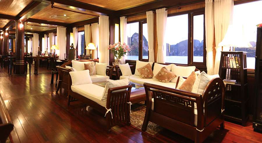 On board, guests can enjoy exceptional dining at the Jasmine Restaurant, serving a selection of authentic Vietnamese cuisine, international dishes, and fine wines. From continental-style breakfasts to leisurely lunches and elegant dinners, each meal is thoughtfully prepared with high attention to detail and service quality.