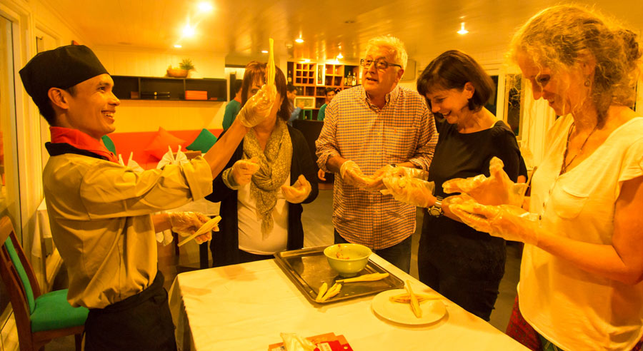 The cruise features 12 cozy yet well-appointed cabins, each equipped with air conditioning, adjustable lighting, and private en-suite bathrooms to ensure comfort throughout the journey. Guests can choose between Superior Cabins and Junior Suites, thoughtfully designed to combine artistic elegance with modern amenities.