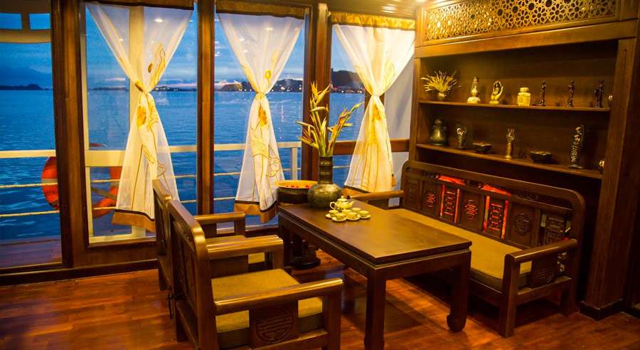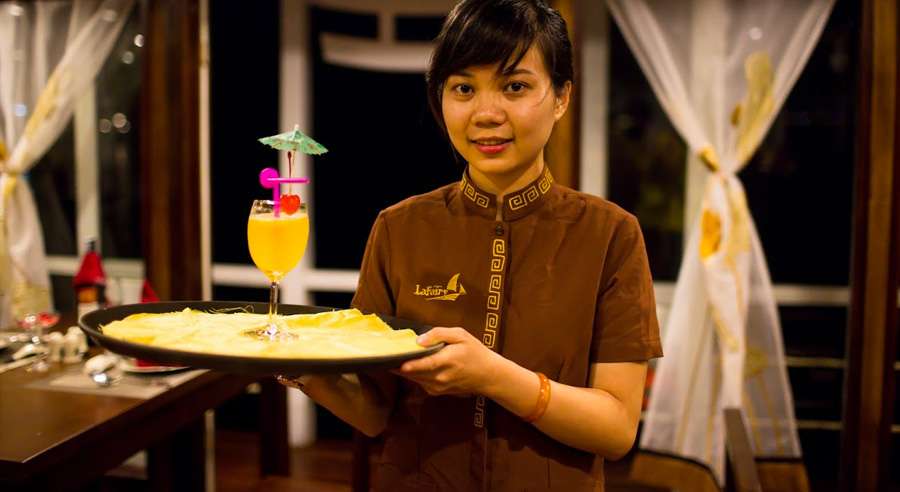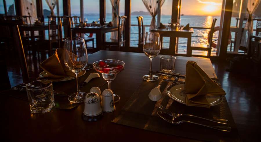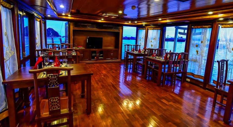 On board, guests can enjoy diverse dining experiences at the LaFairy Sails Restaurant & Bar, serving daily meals with a rich selection of Vietnamese seafood and international cuisine. With attentive service, comfortable accommodation, and a charming onboard atmosphere, LaFairy Sails Cruise Halong Bay is a well-balanced option for couples, families, and small groups—carefully selected and recommended by Vietnam Booking Center.