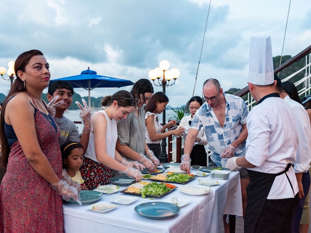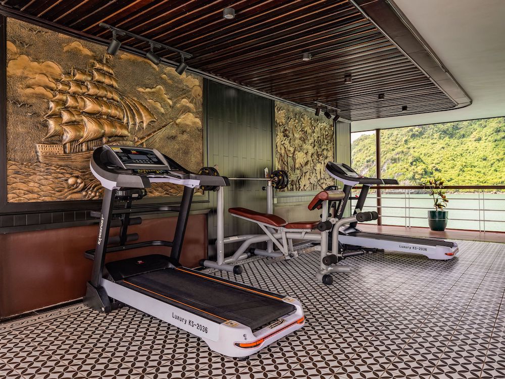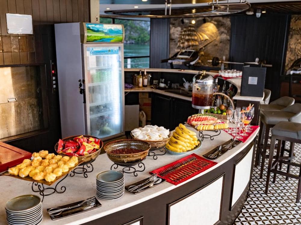 Onboard facilities include an outdoor jacuzzi, spa & massage services, and a fitness room, offering the perfect balance between relaxation and recreation. With high-end amenities and professional service, Le Journey Elegance Cruise is an ideal choice for travelers looking to book a luxury Lan Ha Bay cruise with Vietnam Booking Center.