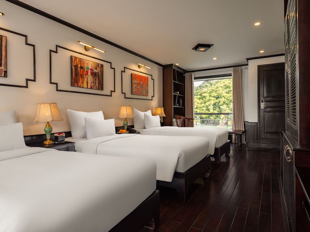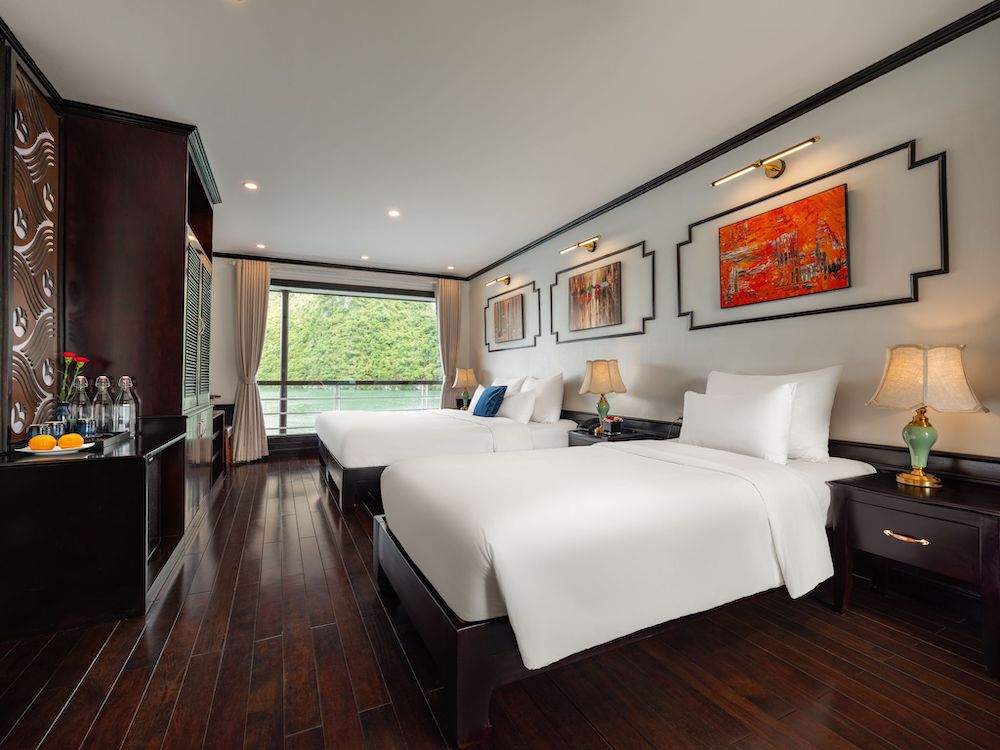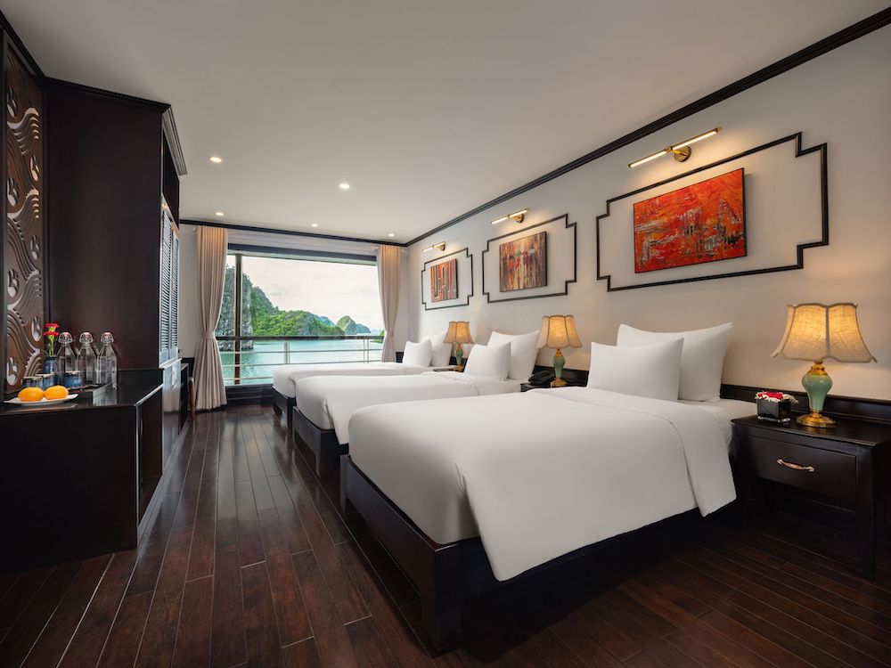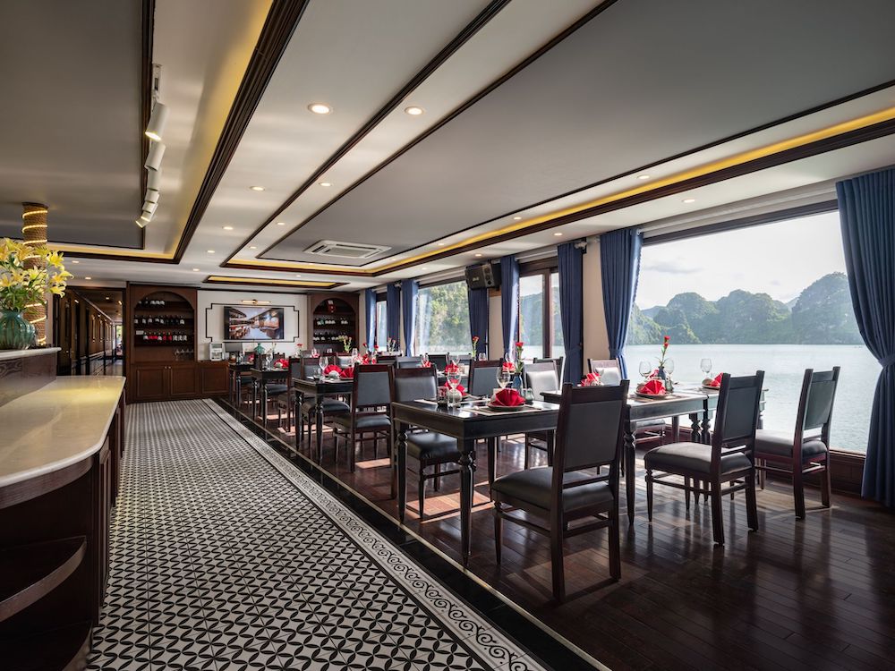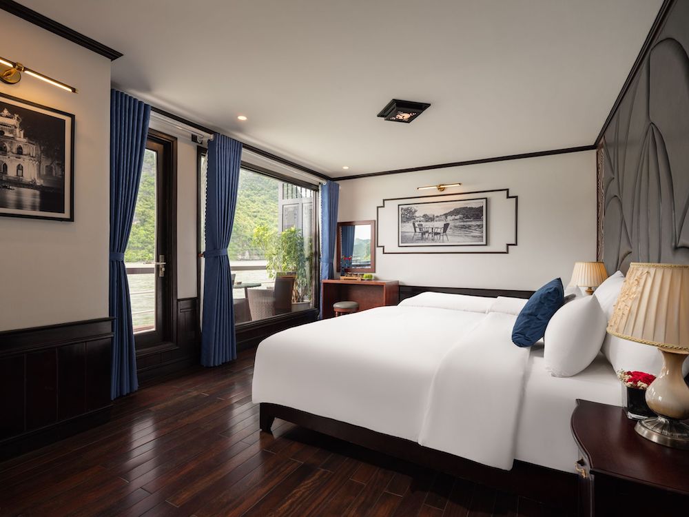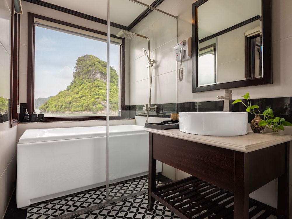 Built with a modern steel hull, Le Journey Elegance Cruise features an elegant yet cozy design, creating a warm and luxurious onboard atmosphere. All cabins are thoughtfully appointed with private balconies or extra-large windows, allowing guests to enjoy uninterrupted bay views. Each en-suite bathroom is fully equipped with premium bath amenities and a bathtub with ocean view, ensuring a relaxing and indulgent stay.