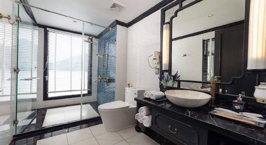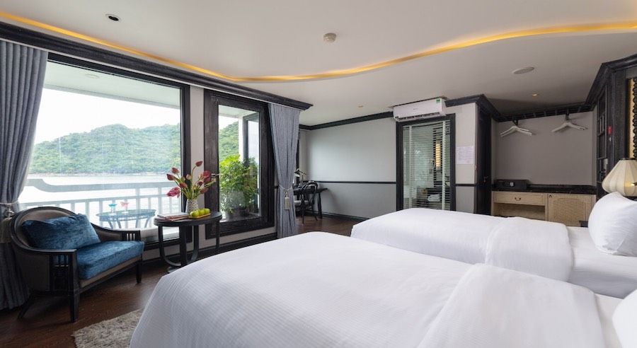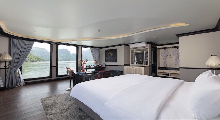 The cruise offers 18 deluxe cabins ranging from 35 to 55m², each designed with comfort and convenience in mind. Guests can enjoy modern features such as self-controlled air-conditioning, a safe box, a mini bar, a wardrobe, and an ensuite bathroom. Every cabin includes a private balcony with a sitting area—perfect for unwinding while taking in the stunning limestone scenery.