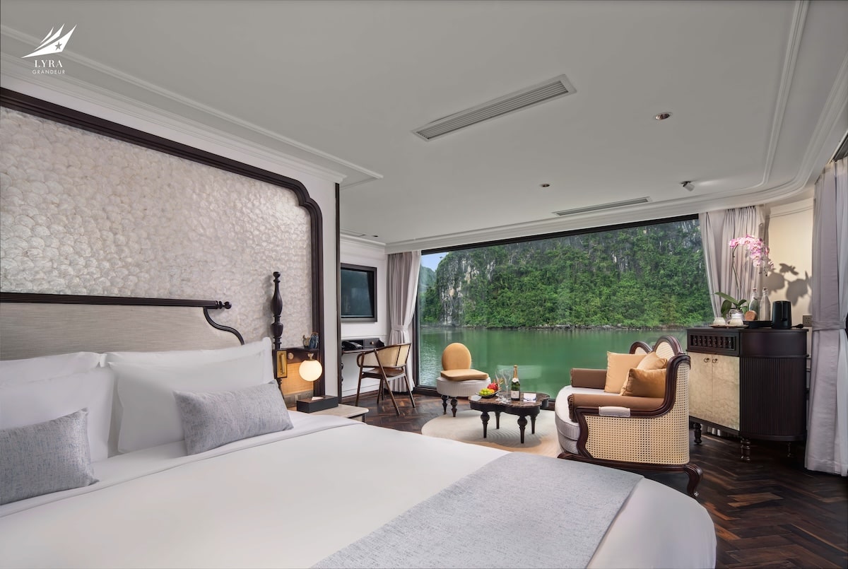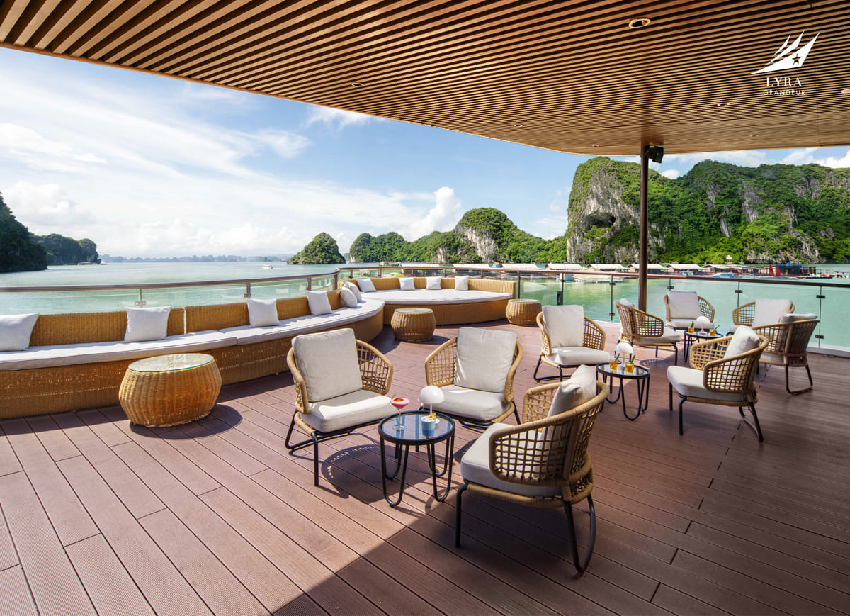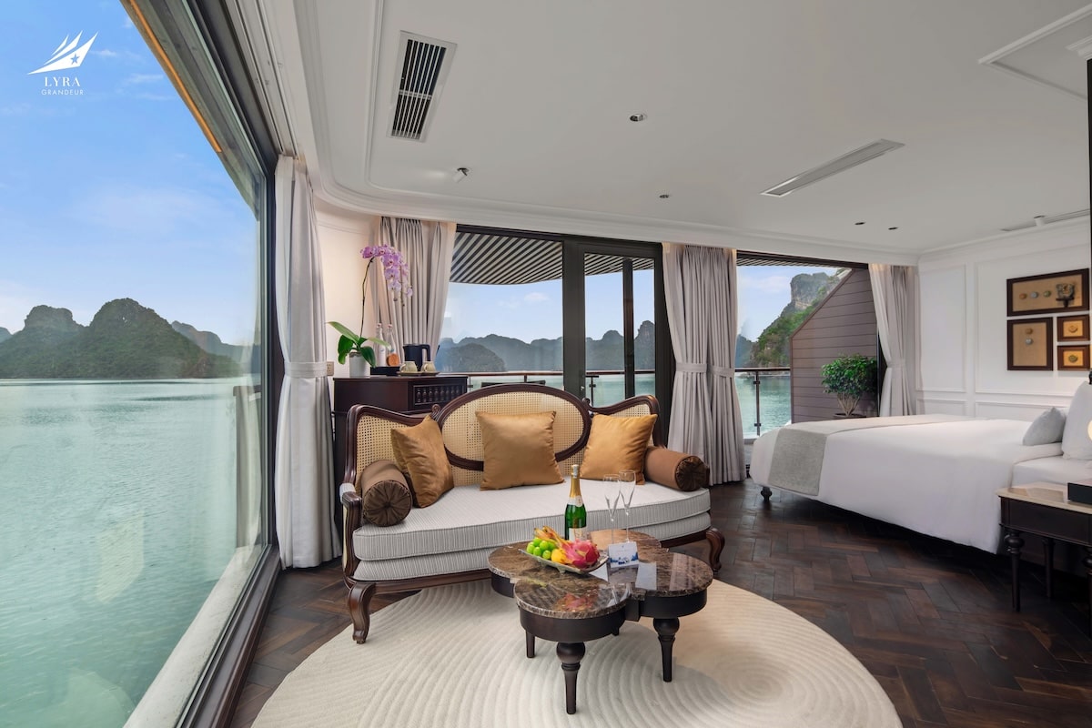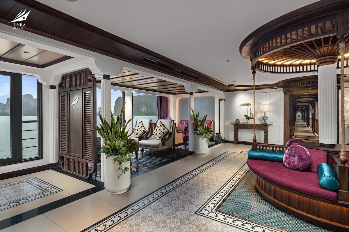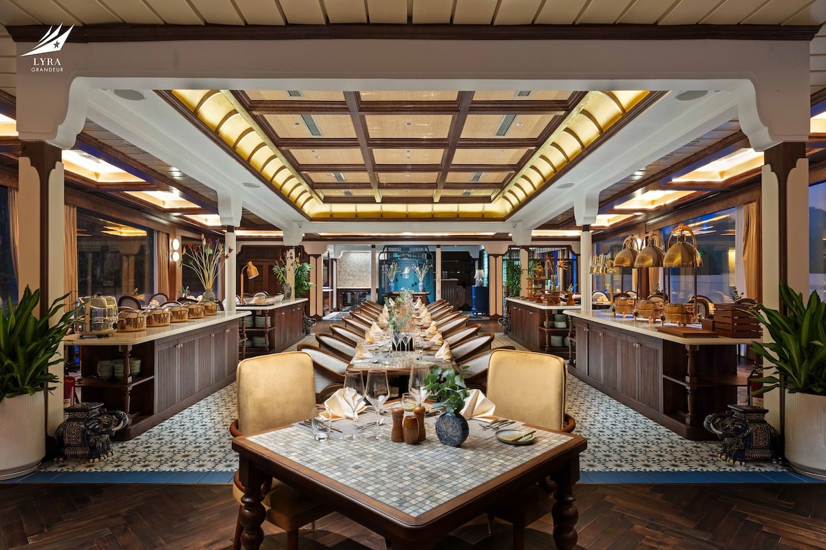 Lyra Grandeur Cruise Lan Ha Bay is a grand luxury cruise designed to deliver a refined and immersive experience in the tranquil waters of Lan Ha Bay. With an elegant design and comprehensive facilities, the cruise is well-suited for couples, families, and multi-generational travelers.