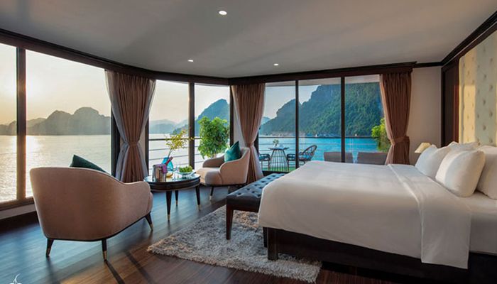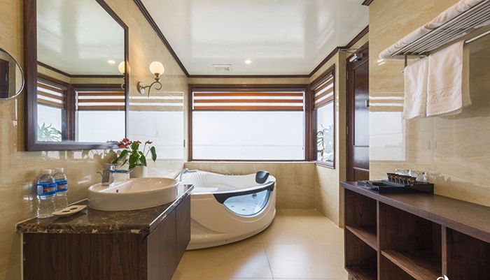 The ship offers 18 stylish cabins, each at least 35m², blending classic European elegance with the rustic charm of Vietnamese design. Every cabin is crafted to provide a bright, relaxing, and luxurious private space throughout your journey.
