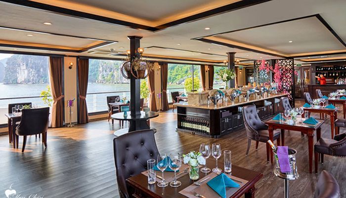 A standout highlight of Mon Cheri Cruise is its exclusive Halal-certified dining venue—one of the few in Halong and Lan Ha Bay. Guests can enjoy an exceptional culinary experience in the elegant restaurant and bar before unwinding in the 24/7 fitness center or indulging in rejuvenating treatments at the onboard spa.