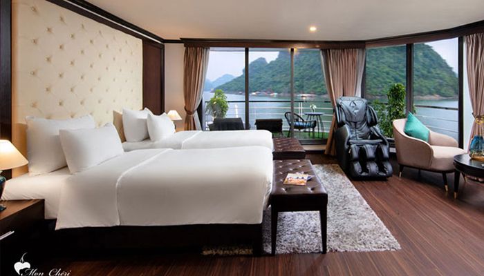 Mon Cheri Cruise is one of the newest luxury vessels in Halong Bay, featuring the latest and fastest non-wooden ship design in Lan Ha Bay. Despite its modern build, the cruise delivers a perfect balance between adventure and high-end comfort, rivaling any premium 5-star line in the region.