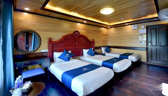 Launched in late 2015, Oasis Bay Cruise stands out as one of Halong Bay’s newest and most distinctive mid-range options. Built from rare, high-quality timber instead of iron, the vessel brings a warm, traditional charm while still delivering a modern cruising experience.
