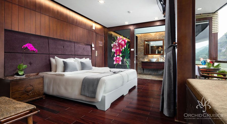 Launched in November 2016, Orchid Cruise stands out with its modern design and exceptional cruising route. Rather than following the typical path, Orchid takes guests from Tuan Chau Pier across Halong Bay and deep into the tranquil, less-visited waters of Lan Ha Bay—offering a journey that goes far beyond the ordinary.