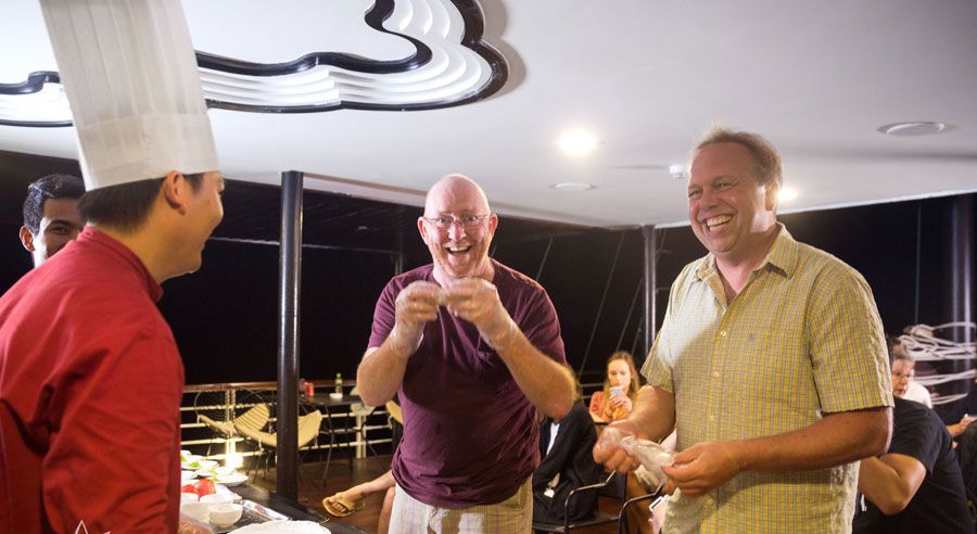 The itinerary is filled with memorable experiences, from kayaking through quiet lagoons to sunbathing on the deck, squid fishing at night, visiting extraordinary grottoes and islands, or joining a fun Vietnamese cooking class. Each activity is carefully curated to bring out the natural beauty and cultural richness of Halong–Lan Ha Bay.