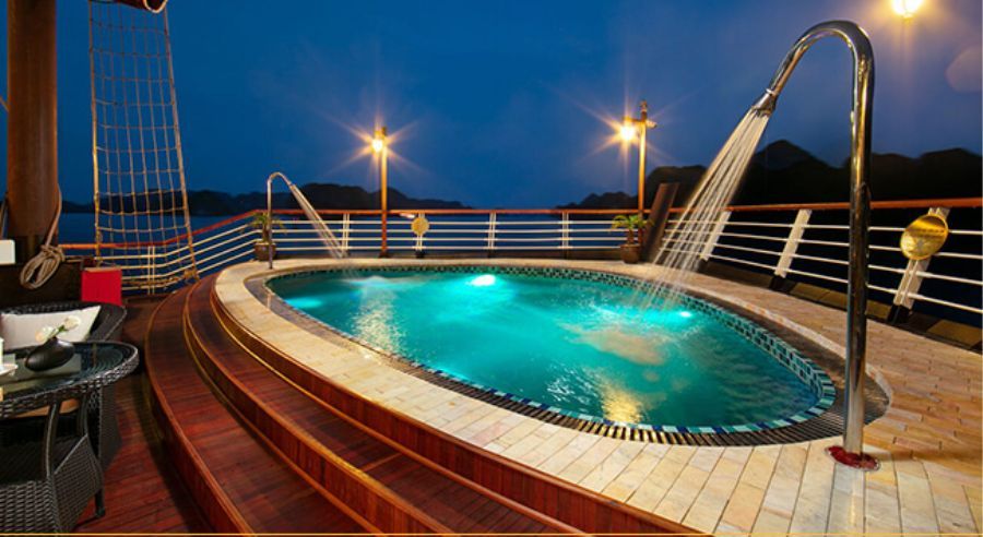 A spacious jacuzzi at the bow of the ship