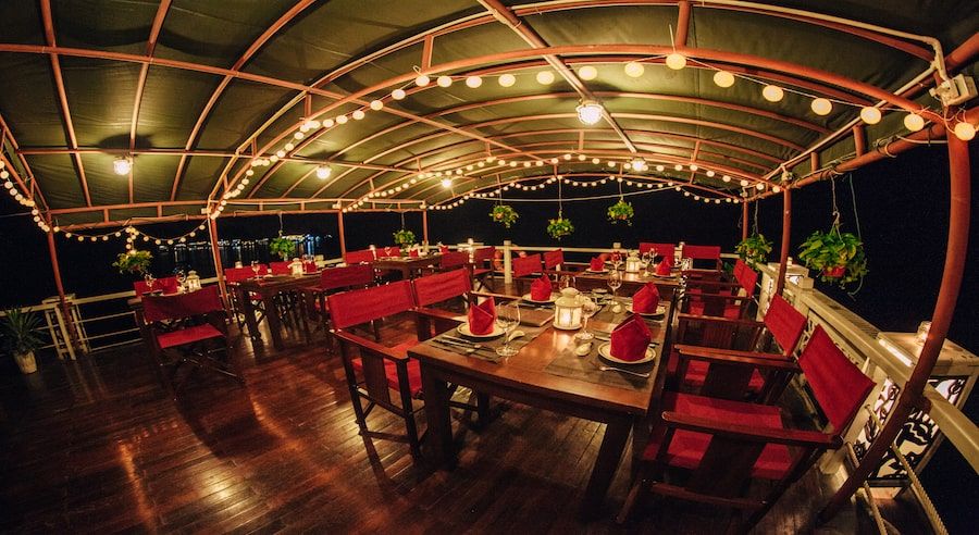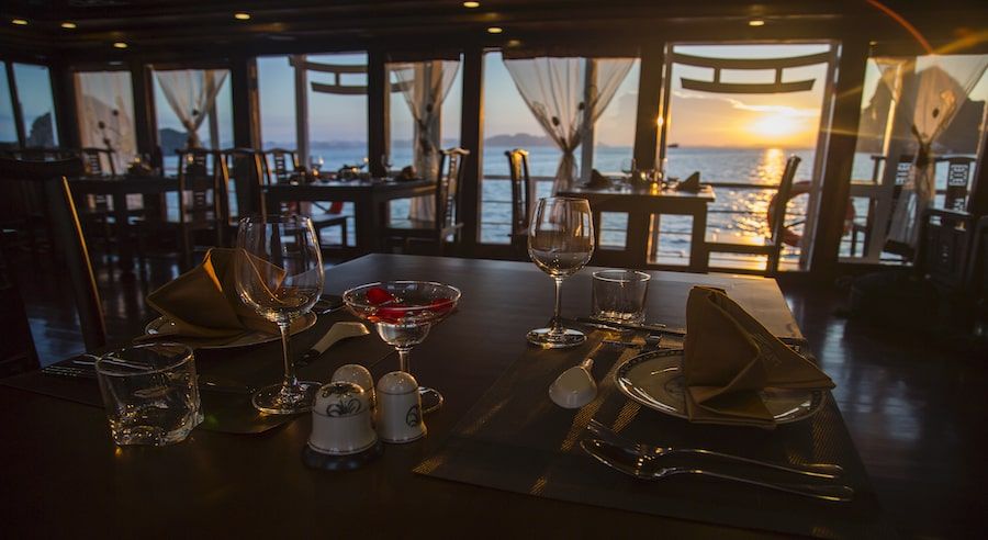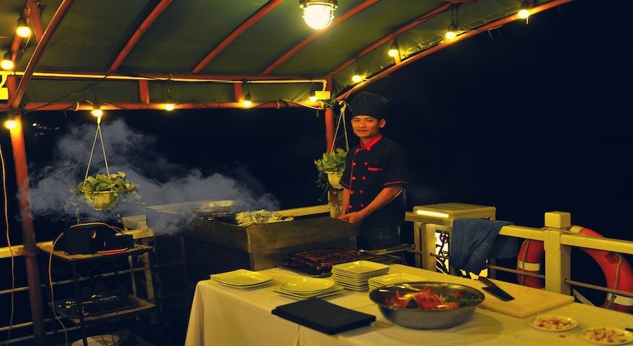 Renea Cruise places strong emphasis on the dining experience. Guests can look forward to a delicious selection of Vietnamese dishes made from fresh local ingredients, especially seafood sourced directly from Halong. One of the most unforgettable highlights is the outdoor BBQ dinner served on the top deck, where the romantic ambiance of Bai Tu Long Bay sets the perfect scene.