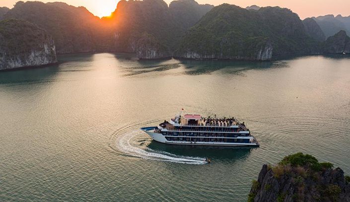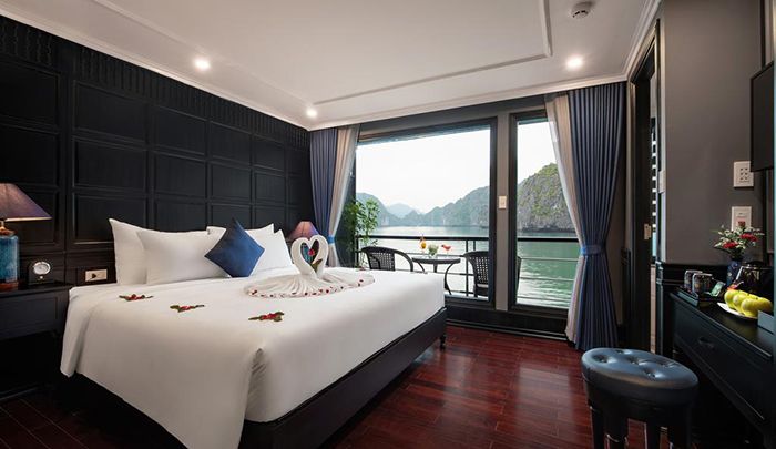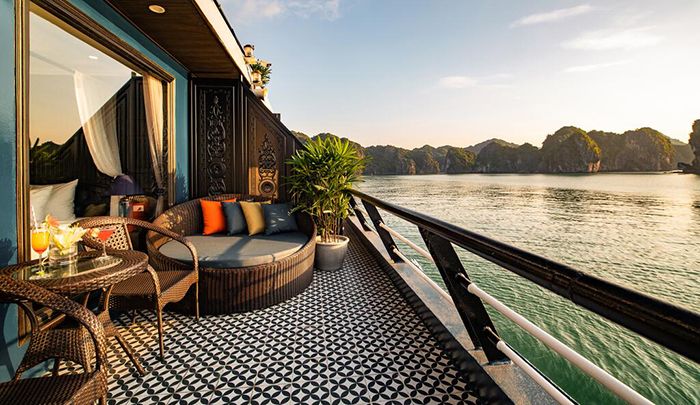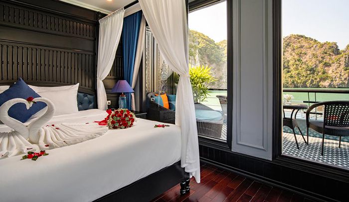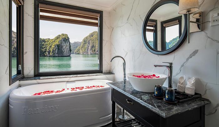 Offering refined overnight voyages through Halong – Lan Ha Bay for years, Rosy Cruise features a graceful modern design paired with 22 immaculate suites. Every cabin includes a private balcony, a luxury bathroom with marble details, and a separate soaking tub—creating an elegant retreat for your stay.