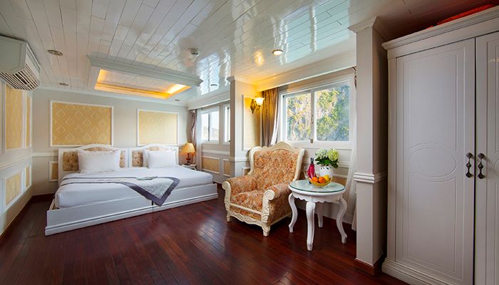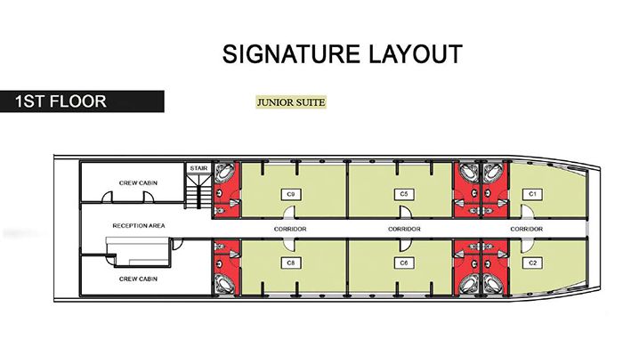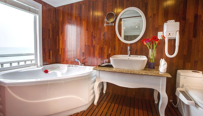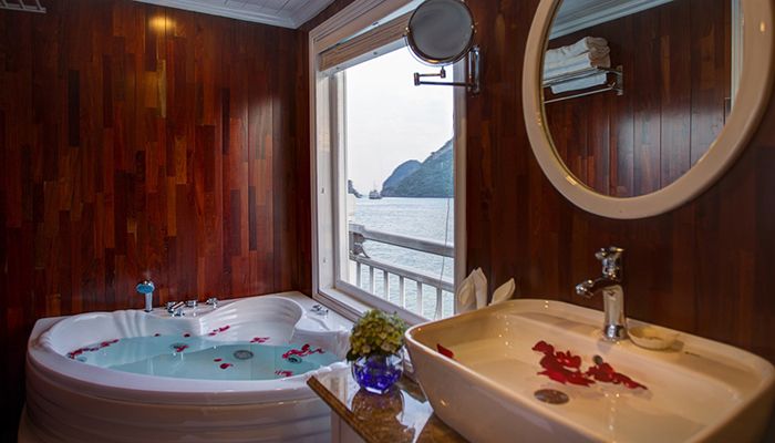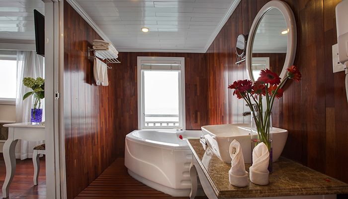 Signature Halong Cruise is a refined blend of a traditional wooden hull and a steel-core structure, ensuring both beauty and top-tier safety. Spanning 4 spacious decks, the cruise features 12 luxurious cabins, each equipped with an en-suite Jacuzzi bathroom, modern amenities, and thoughtful interior design. A stylish dining room and wide open sundecks complete the onboard experience, delivering a standard of service worthy of a true 5-star boutique cruise.