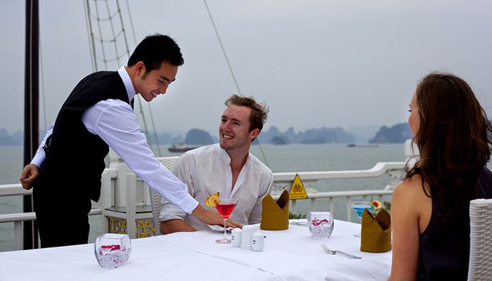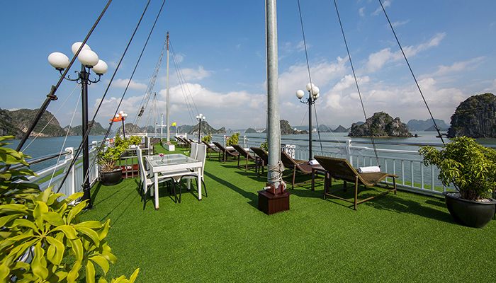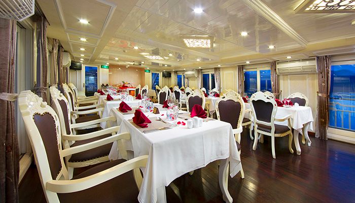 The journey brings you through the breathtaking seascapes of Halong Bay and the tranquil, unspoiled beauty of Bai Tu Long Bay. Guests can savor a delightful culinary experience prepared by skilled chefs, featuring fresh seafood, Vietnamese favorites, and international dishes—all served in an elegant, intimate setting.