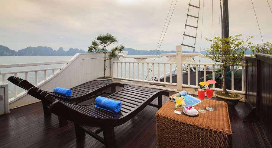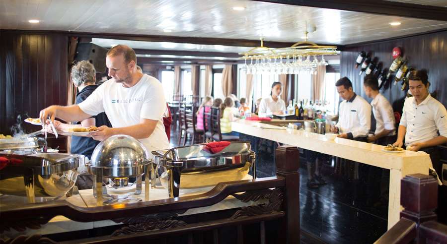 Beyond the cabins, Stellar Cruise offers a range of onboard facilities including an elegant restaurant, spa & massage services, lounge bar, and a large sundeck, ideal for relaxation and sightseeing. With attentive service and a well-designed itinerary, Stellar Cruise Halong Bay promises a memorable experience for travelers seeking quality and value—carefully selected by Vietnam Booking Center.