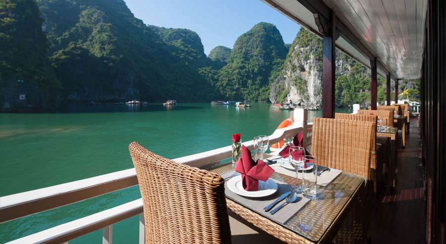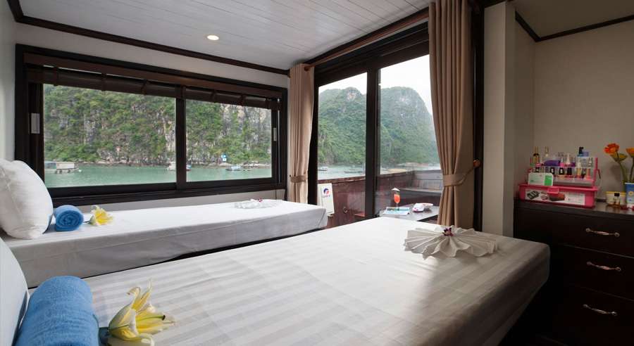 Stellar Cruise Halong Bay is a refined boutique cruise offering professional service and modern comfort in the heart of Halong Bay. Designed in a traditional Oriental style, the cruise features 21 spacious and well-appointed cabins, providing a cozy yet elegant atmosphere for an enjoyable overnight journey.