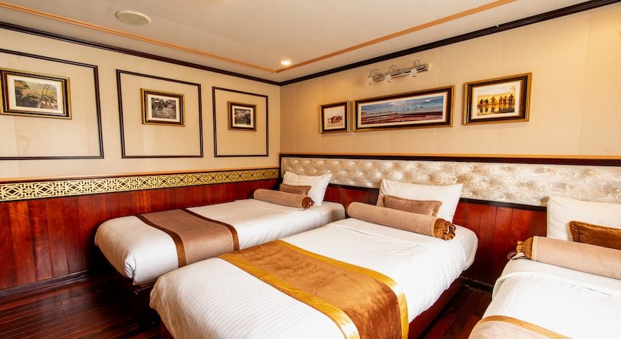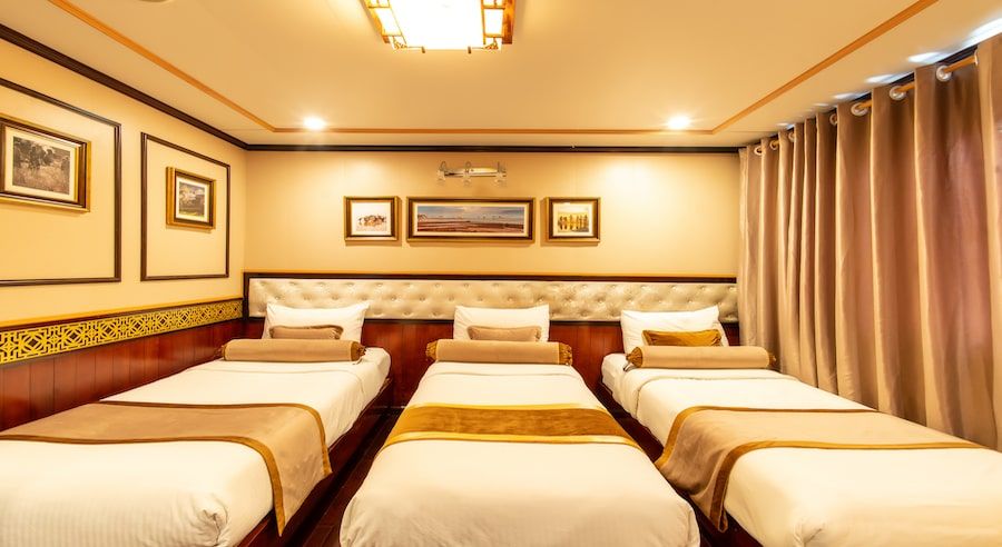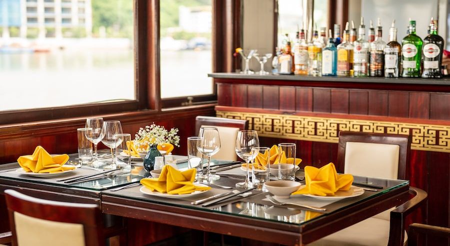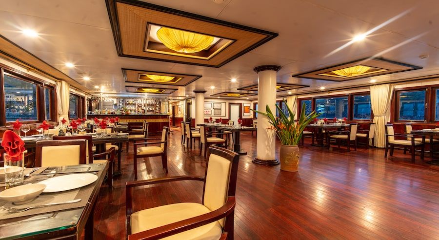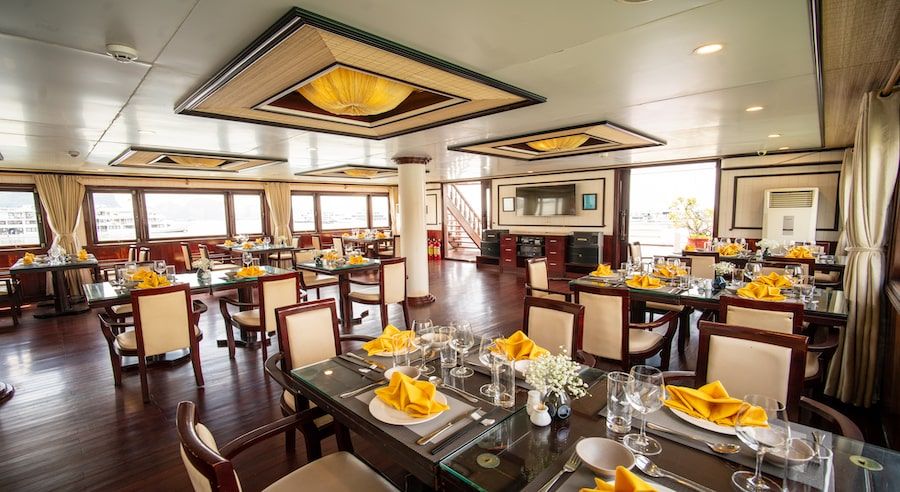 Swan Cruise invites you to indulge in a charming 3-star journey through the serene beauty of Halong Bay. The vessel features 18 sea-view cabins—including 5 twin rooms, 1 triple room, and 2 family connecting cabins—each designed with traditional touches and natural materials like bamboo. Every cabin comes with cozy bedding, air-conditioning, and a private bathroom, while the bar and dining area offer a warm, romantic atmosphere. Large panoramic windows ensure you never miss a moment of the bay’s breathtaking scenery as you enjoy authentic Vietnamese cuisine.