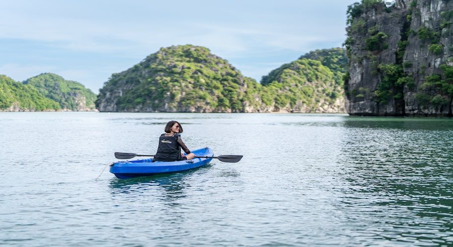 Your voyage brings you to the peaceful and less-traveled Bai Tu Long Bay, where you can kayak and swim in the emerald waters around Cap La Island. A visit to Thien Canh Son Cave adds a touch of adventure as you explore its unique formations and learn about the bay’s geological story.
