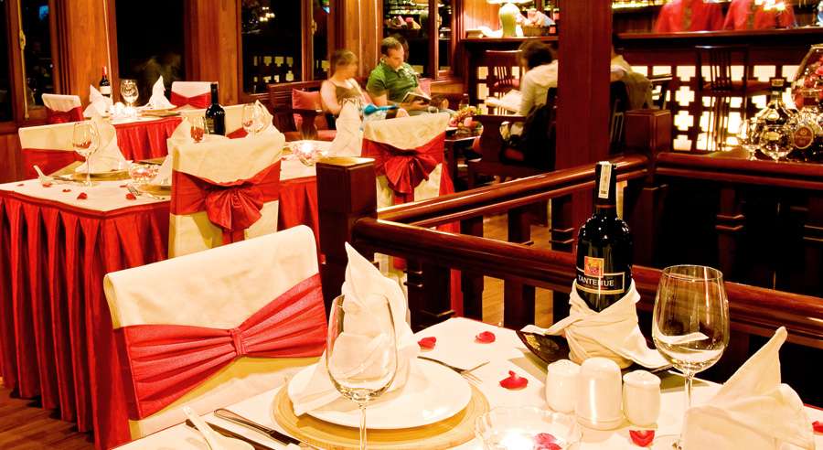 In addition to superior accommodation, Valentine Cruise offers a wide range of onboard and outdoor activities. Guests can enjoy kayaking, fishing, and swimming during the day, or unwind at the spa area and sun lounge on the top deck while admiring the serene bay views. In the evening, the onboard restaurant serves delicious dishes in a romantic candle-lit setting, creating a truly memorable Valentine Night on Halong Bay.