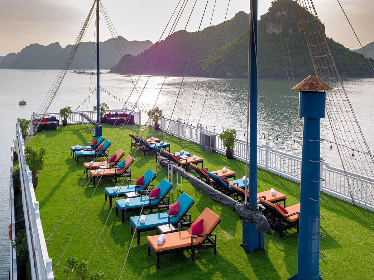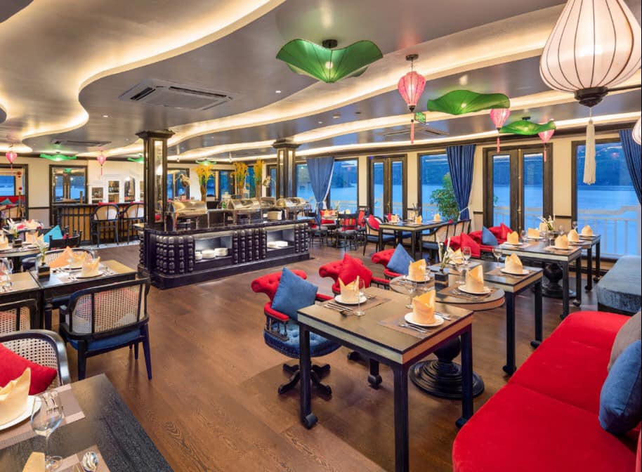 Departing from Tuan Chau Harbor, the cruise accommodates up to 48 passengers, guiding them through the mesmerizing limestone landscapes and poetic beauty of Ha Long Bay.