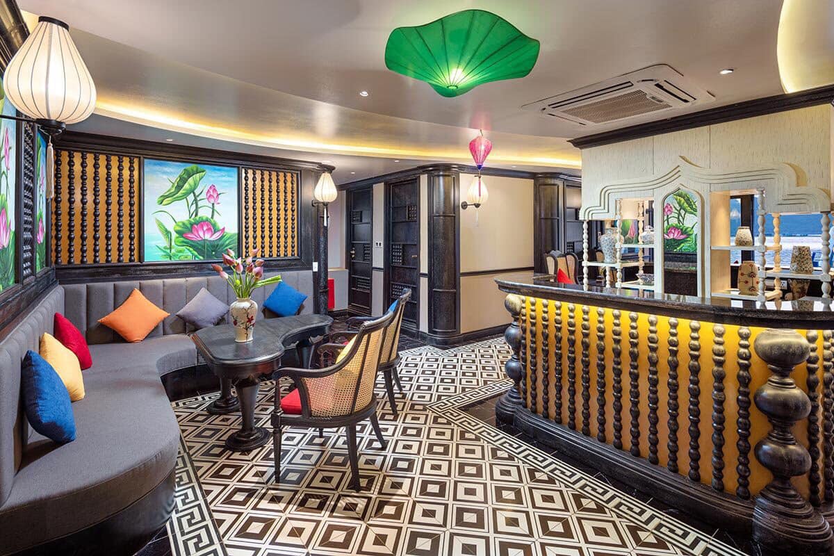 Verdure Lotus Cruise is one of the newest additions to the 5-star luxury cruise collection in Ha Long Bay and Lan Ha Bay. Built from high-quality stainless steel for exceptional durability and stability, the vessel houses 18 elegantly appointed cabins, each crafted with natural wood and refined Indochine-inspired décor. The onboard restaurant and bar offer luxurious dining experiences with open spaces and panoramic views of the bay.