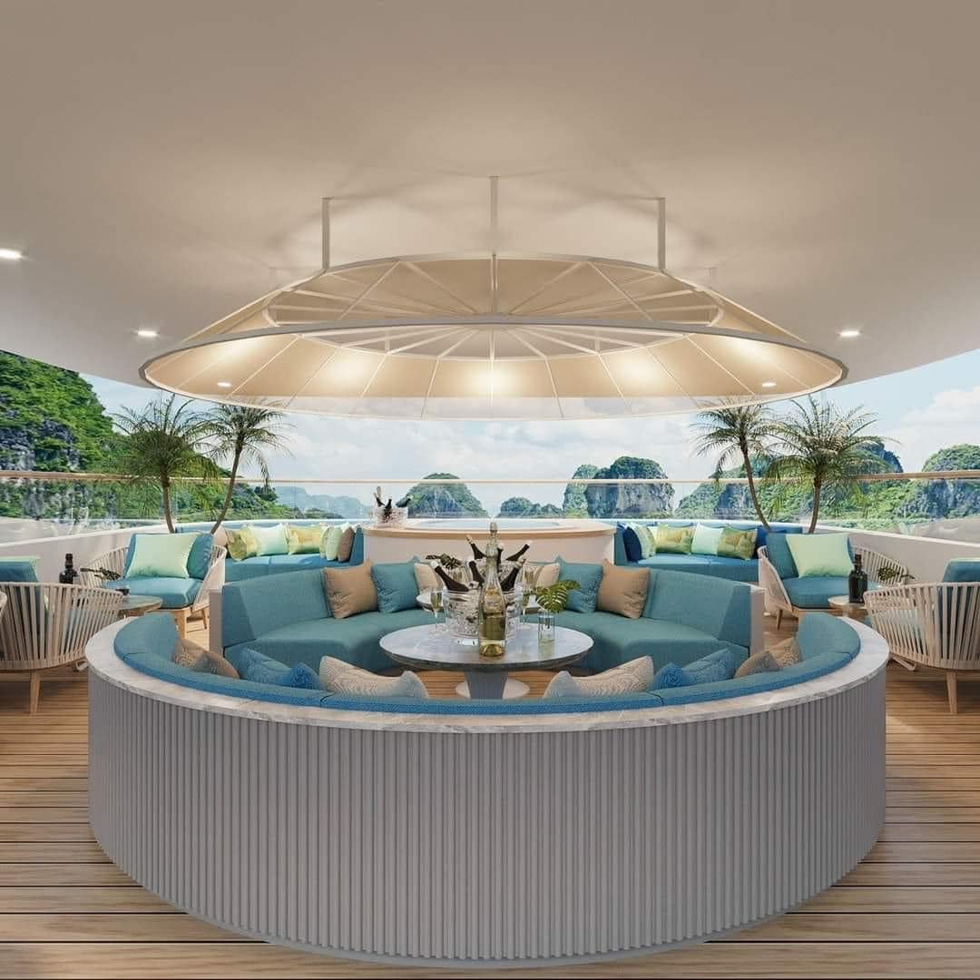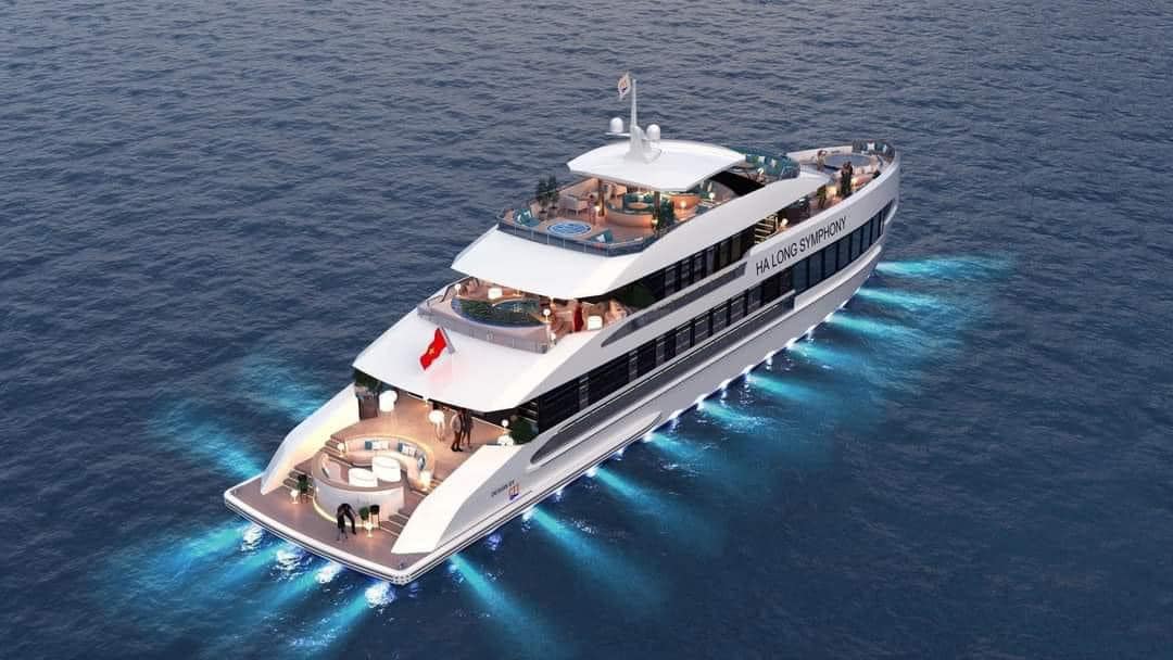 Halong Symphony cruise will take you to explore the poetic beauty of the bay and the wonder of nature. From cruise, you will see hundreds of limestone mountains with countless different shapes and emerald sea water. All converging with the cloud and sky to creat a beautiful, shimmering picture that can make you smile, touch every soul- even the coldest.