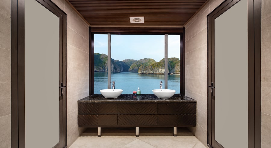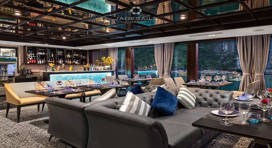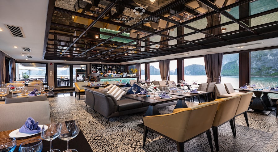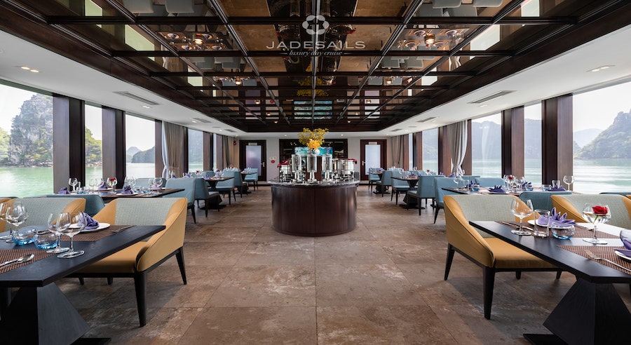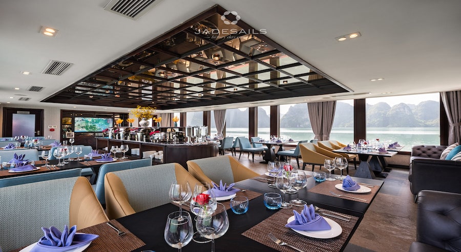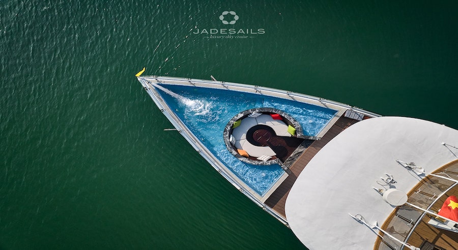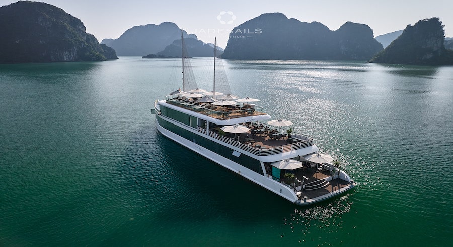 JadeSails Cruise is a premium luxury day cruise in Halong – Lan Ha Bay, ideal for travelers seeking comfort, privacy, and a refined experience within one day. Designed in an elegant sailboat style, JadeSails stands out with its open-space concept, contemporary décor, and panoramic sea views.