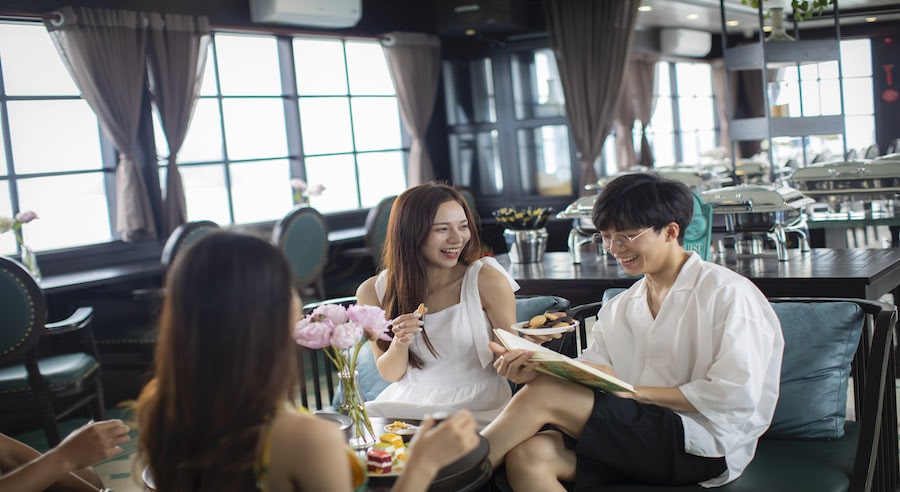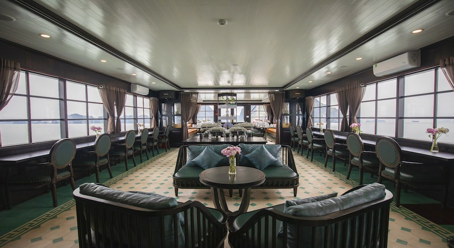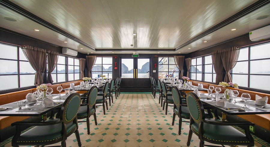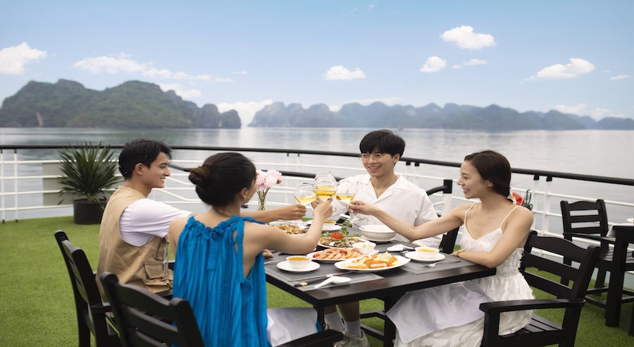 Despite its day-cruise format, La Muse is well-equipped with premium facilities including an elegant restaurant & bar, spacious sundeck, and comfortable seating areas with panoramic sea views. Guests can relax, sightsee, and enjoy complimentary drinks while cruising through dramatic limestone landscapes.